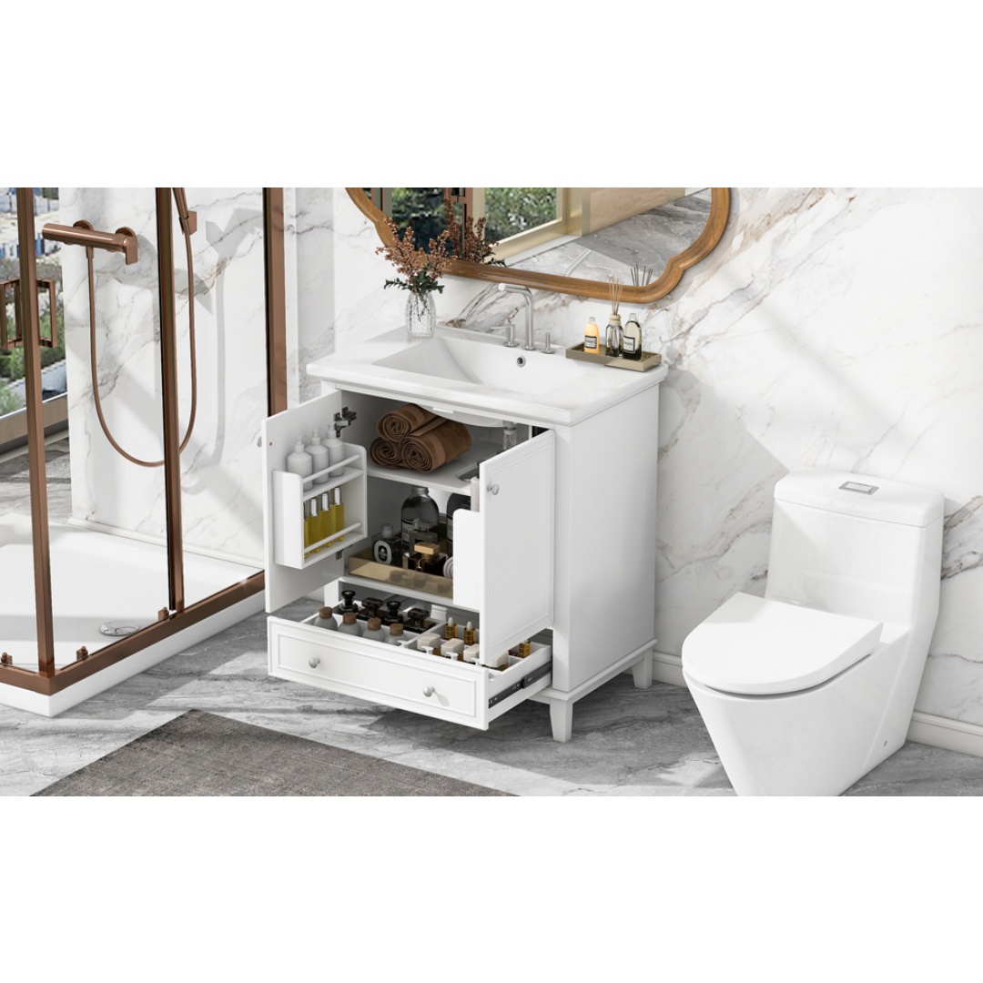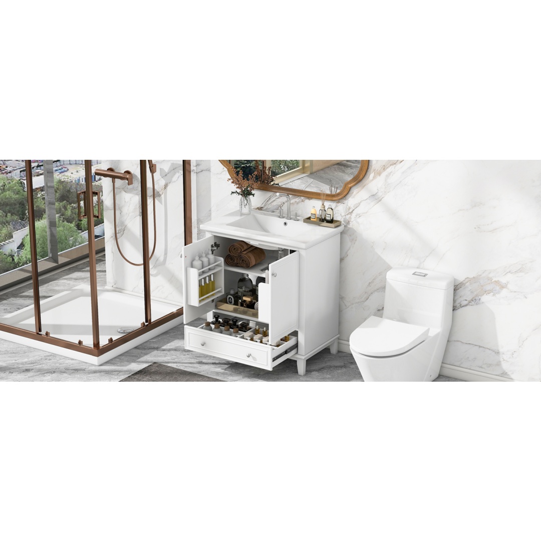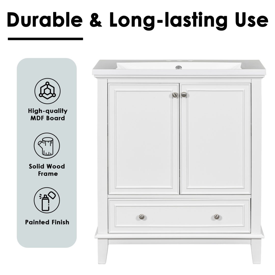 Product Name:30" Bathroom Vanity with Sink Combo, Multi-functional Bathroom Cabinet with Doors and Drawer, Solid Frame and MDF Board, White (Old Sku:SY999606AAK)