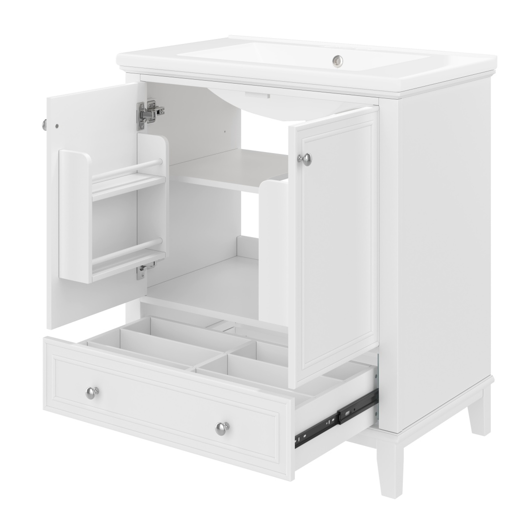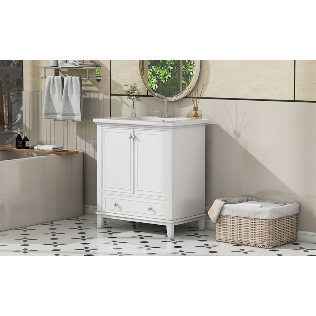 30 Bathroom Vanity With Sink Combo, Multi-functional Bathroom Cabinet With Doors And Drawer, Solid Frame And MDF Board, White