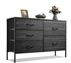 5 Drawer Dresser For Bedroom, Drawers With Wooden Top Metal Frame