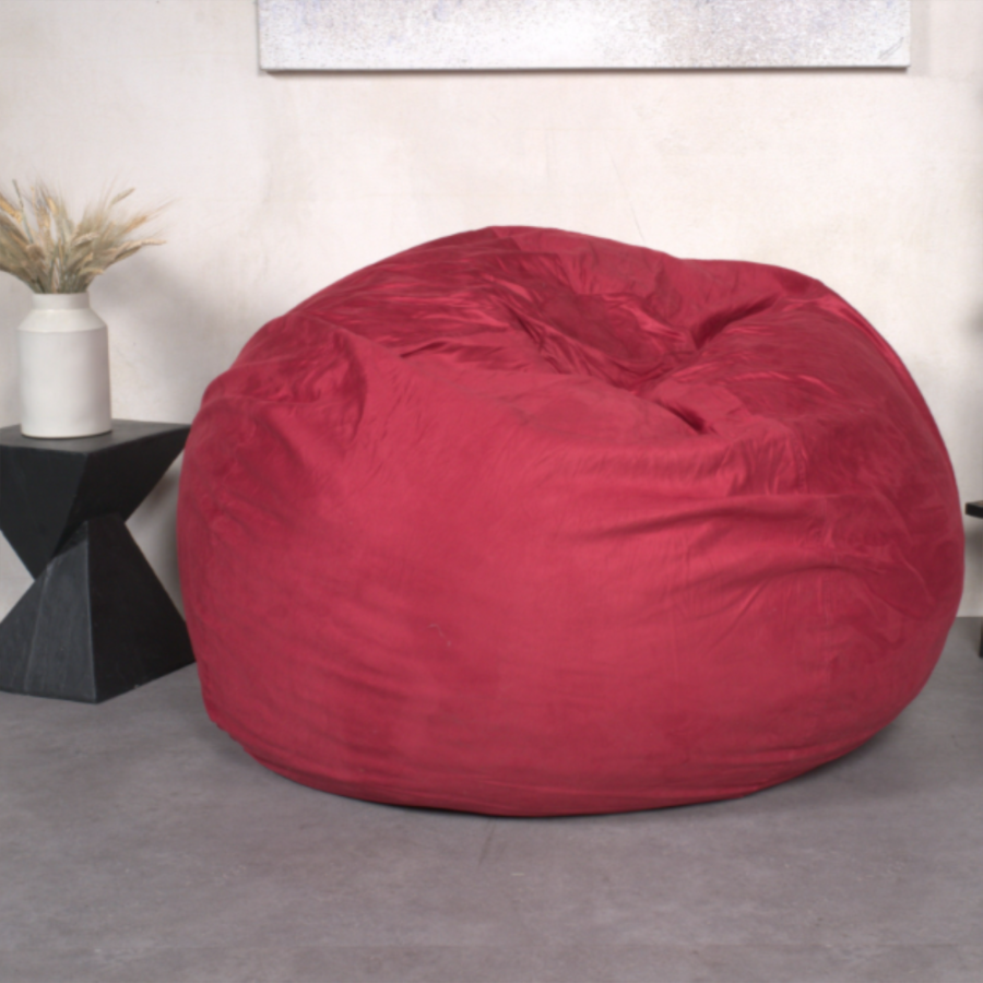 5-Foot Comfortable High-Density Shredded Foam Bean Bag Chair For Kids And Adults, With Removable Microsuede Cover, Ideal Reading And Bedroom Floor Lounge, Chinese Red