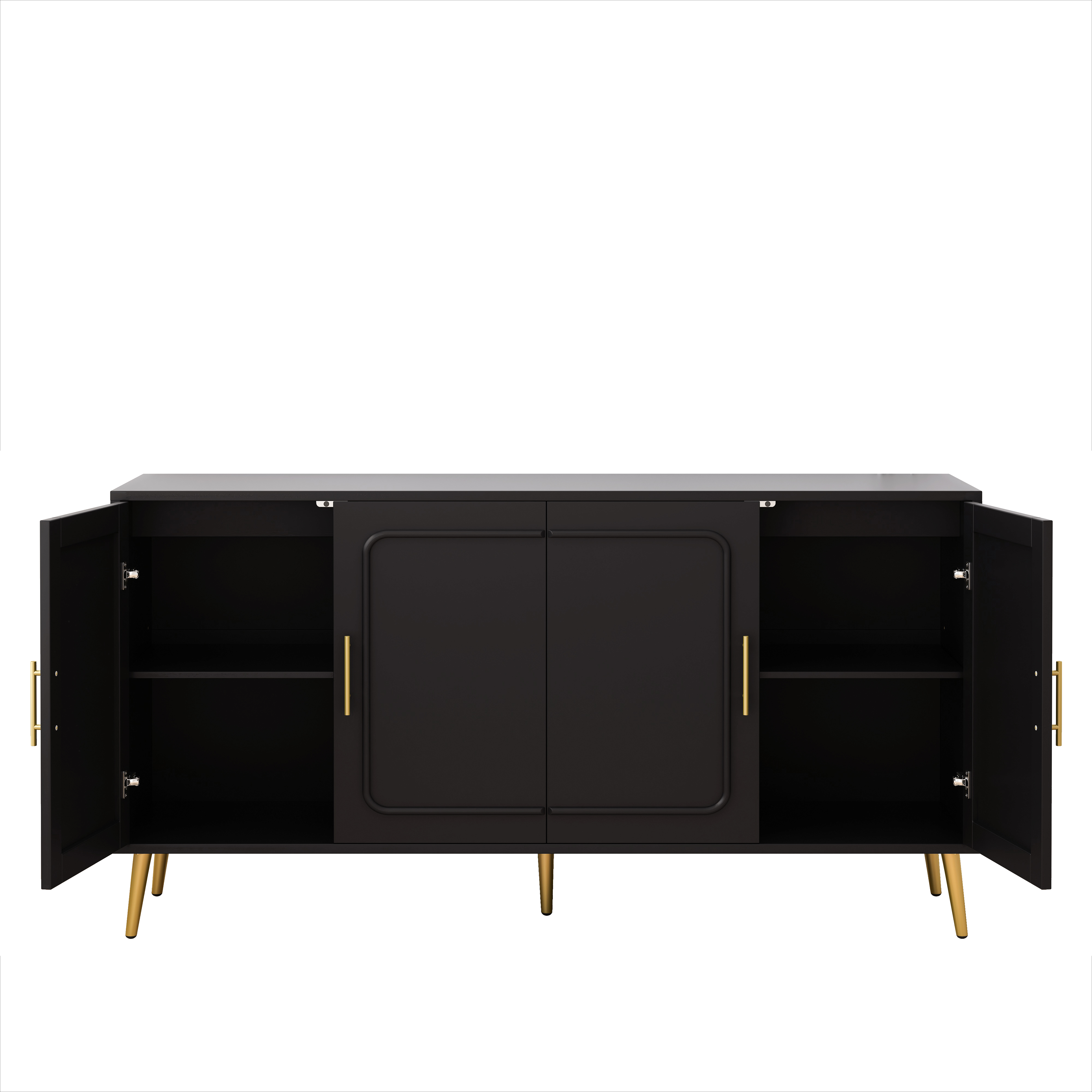 - 1、Elegant Design: The Four-door cabinet features a sleek black finish complemented by stylish gold feet, making it a perfect addition to any modern home decor.