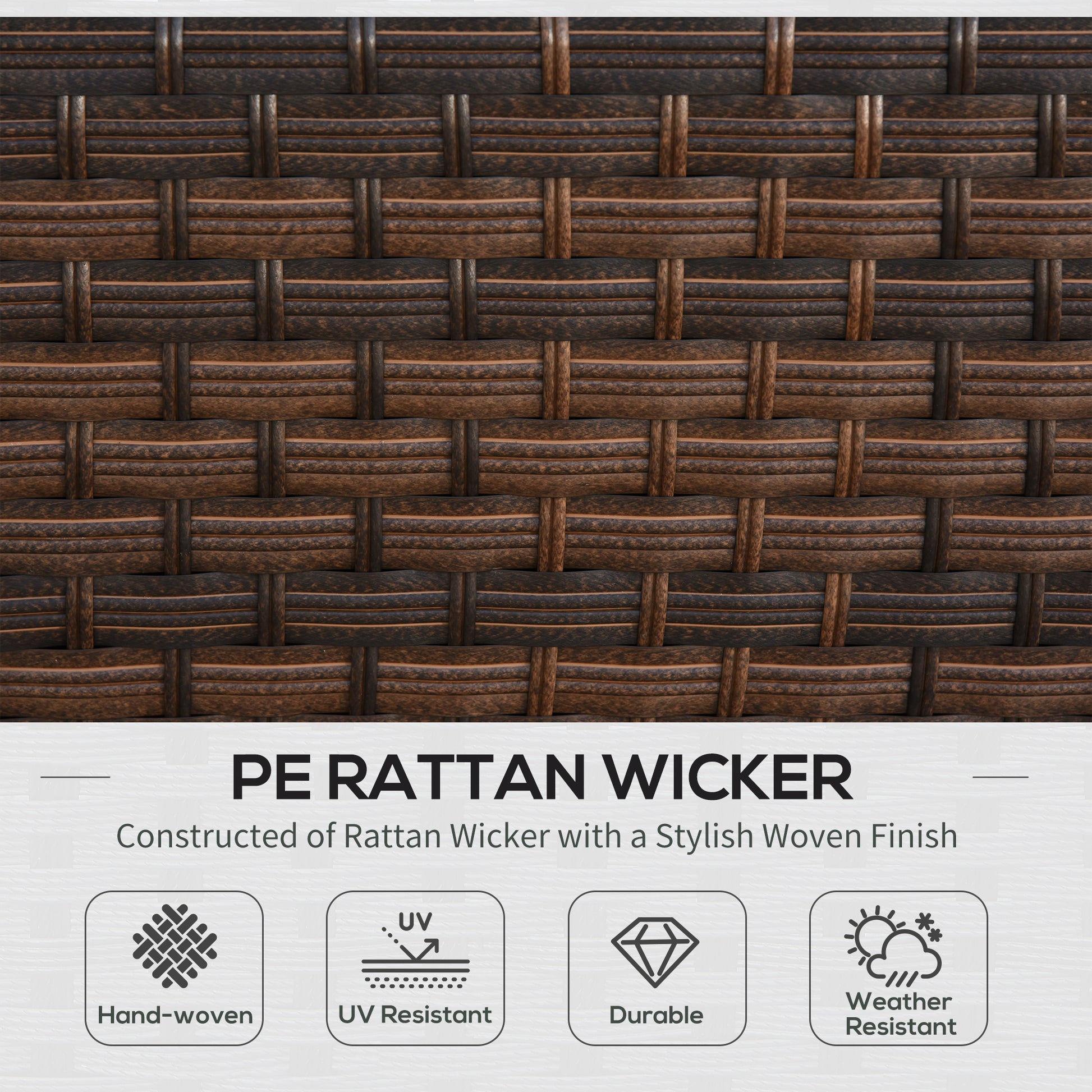 Just because you have a small apartment balcony doesn't mean outdoor furniture is out of your grasp. Bring indoor comfort outside with an Outsunny small patio furniture set. It includes two cushioned sofa chairs, ottomans to kick your feet up, and a coffee table to share drinks with a friend. The wide armrests wrap you all around, and pillows put the cherry on top. Handwoven with PE rattan, our apartment patio furniture brings form and function to your balcony. Get out, get comfy, get Outsunny. Features: - 5-piece set with chairs, 2 ottomans, and an outdoor coffee table - Extra throw pillows - The coffee table features a wood grain plastic top - A second table tier for decor like plants - Great for gardens, small apartment balconies, and backyards - Handwoven all-weather PE rattan wicker with a steel frame for reinforced strength - Weather-resistant cushions - Zippered cushion covers are removable for easy cleaning - Assembly required Specification: - Color: Mixed Brown Rattan, Beige Cushion - Materials: PE Rattan, Galvanized Steel, Polyester, PS Board - Armchair Dimensions: 30.25" W x 26.75" D x 29.25" H - Seat Size: 21.75" W x 24" D - Seat Height: 12.25" H - Ottomans Size: 30.25" W x 22.75" D x 15.25" H - Table Size: 20" L x 20" W x 17.75" H - Weight Capacity: 352 lbs. (Sofa/Ottoman), 110 lbs. (Coffee Table) - Item Label: 860-126BN Package Includes: - 2 x Armchair - 2 x Ottoman - 1 x Coffee Table - 4 x Cushion - 2 x Pillow - 1 x Manual Just because you have a small apartment balcony doesn't mean outdoor furniture is out of your grasp. Features: - 5-piece set with chairs, 2 ottomans, and an outdoor coffee table - Extra throw pillows - The coffee table features a wood grain plastic top - A second table tier for decor like plants - Great for gardens, small apartment balconies, and backyards - Handwoven all-weather PE rattan wicker with a steel frame for reinforced strength - Weather-resistant cushions - Zippered cushion covers are removable for easy cleaning - Assembly required Specification: - Color: Mixed Brown Rattan, Dark Blue Cushion - Materials: PE Rattan, Galvanized Steel, Polyester, PS Board - Armchair Dimensions: 30.25" W x 26.75" D x 29.25" H - Seat Size: 21.75" W x 24" D - Seat Height: 12.25" H - Ottomans Size: 30.25" W x 22.75" D x 15.25" H - Table Size: 20" L x 20" W x 17.75" H - Weight Capacity: 352 lbs. (Coffee Table) - Item Label: 860-126V03BN Package Includes: - 2 x Armchair - 2 x Ottoman - 1 x Coffee Table - 4 x Cushion - 2 x Pillow - 1 x Manual.