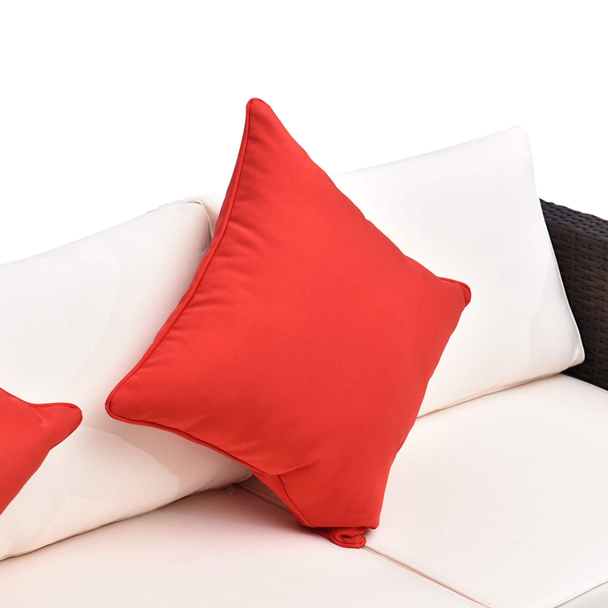 Bring the comforts of the indoors outside with Outsunny. This patio furniture set has four seats and a place for you to put up your feet. The surface is completely covered in plush cushions, and it includes extra pillows. A coffee table is up front, so you have a place for drinks, snacks, phones, or board game. Whether you place it on your patio, porch or by the poolside, bring the comforts of inside outside, and enjoy the outdoors more. Get out, get comfortable, get Outsunny. Features: - Six piece patio sofa set with four seats, a footrest, and a coffee table - Handwoven charm with better resistance to water - High weight capacity - 5mm Tempered glass protects the coffee table from scratching and is easy to clean - Fully cushioned surface with two extra throw pillows - Removable cushion covers make them easy to clean - Non-slip footpads to help keep your sectional steady Specification: - Color: Mixed Brown, Cream White - Materials: Galvanized Steel, PE Rattan - Corner Sofa Section Dimensions: 26.75" W x 26.75" D x 25.25" H - Middle Sofa Section Dimensions: 23.5" W x 26.75" D x 25.25" H - Ottoman Dimensions: 26.75" W x 26.75" D x 13" H - Coffee Table Dimensions: 26.75" W x 26.75" D x 13" H - Seat Cushions Thickness: 4" D - Back Cushions Thickness: 4" D - Seat Height: 13" H - Weight Capacity: 395 lbs. / per seat, 110 lbs. (Table) - Item Label: 01-0319 Package Includes: - 2 x Corner Chairs - 2 x Single Chairs - 1 x Ottoman - 1 x Coffee Table - 5 x Seat Cushion - 4 x Back Cushion - 2 x Pillow - 1 x Manual Bring the comforts of the indoors outside with Outsunny. Features: - Six piece patio sofa set with four seats, a footrest, and a coffee table - Handwoven charm with better resistance to water - High weight capacity - 5mm Tempered glass protects the coffee table from scratching and is easy to clean - Fully cushioned surface with two extra throw pillows - Removable cushion covers make them easy to clean - Non-slip footpads to help keep your sectional steady Specification: - Color: Mixed Gray, Charcoal - Material: Galvanized Steel, PE Rattan - Corner Sofa Dimensions: 26.75" W x 26.75" D x 25.25" H - Middle Sofa Dimensions: 23.5" W x 26.75" D x 25.25" H - Ottoman Dimensions: 26.75" W x 26.75" D x 13" H - Coffee Table Dimensions: 26.75" W x 26.75" D x 13" H - Seat Cushions Thickness: 4" - Back Cushions Thickness: 4" - Seat Height: 13" - Weight Capacity: 395 lbs. (Table) - Item Label: 841-096V01GY Package Includes: - 2 x Corner Chairs - 2 x Single Chairs - 1 x Ottoman - 1 x Coffee Table - 5 x Seat Cushion - 4 x Back Cushion - 2 x Pillow - 1 x Manual Bring the comforts of the indoors outside with Outsunny. Features: - Six piece patio sofa set with four seats, a footrest, and a coffee table - Handwoven charm with better resistance to water - High weight capacity - 5mm Tempered glass protects the coffee table from scratching and is easy to clean - Fully cushioned surface with two extra throw pillows - Removable cushion covers make them easy to clean - Non-slip footpads to help keep your sectional steady Specification: - Color: Mixed Yellow, Navy Blue, White - Material: Galvanized Steel, PE Rattan - Corner Sofa Dimensions: 26.75" W x 26.75" D x 25.25" H - Middle Sofa Dimensions: 23.5" W x 26.75" D x 25.25" H - Ottoman Dimensions: 26.75" W x 26.75" D x 13" H - Coffee Table Dimensions: 26.75" W x 26.75" D x 13" H - Seat Cushions Thickness: 4" - Back Cushions Thickness: 4" - Seat Height: 13" - Weight Capacity: 395 lbs. (Table) - Item Label: 841-096V01YL Package Includes: - 2 x Corner Chairs - 2 x Single Chairs - 1 x Ottoman - 1 x Coffee Table - 5 x Seat Cushion - 4 x Back Cushion - 2 x Pillow - 1 x Manual.