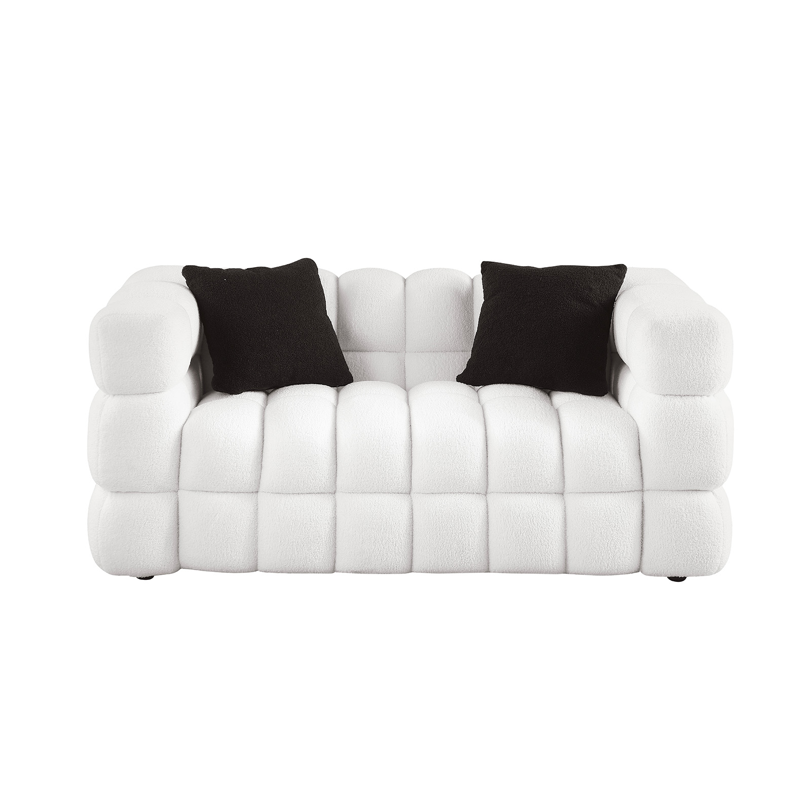 Product Name:62.2length ,35.83" deepth ,human body structure for USA people, marshmallow sofa,boucle sofa ,White color, 2 seater