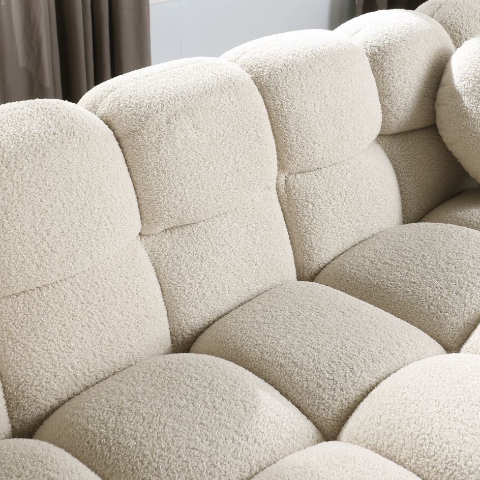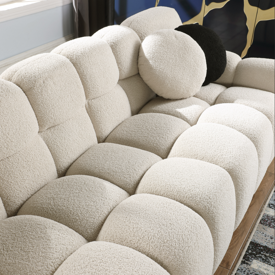 Product Name:64.96 length ,35.83" deepth ,human body structure for USA people, marshmallow sofa,boucle sofa ,2 seater, BEIGE BOUCLE