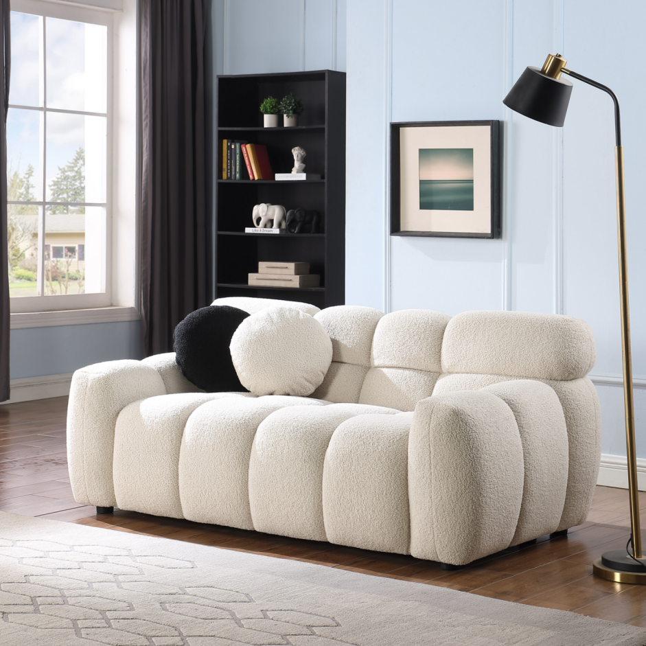 64.96 Length ,35.83inch Deepth ,human Body Structure For USA People, Marshmallow Sofa,boucle Sofa ,2 Seater, BEIGE BOUCLE