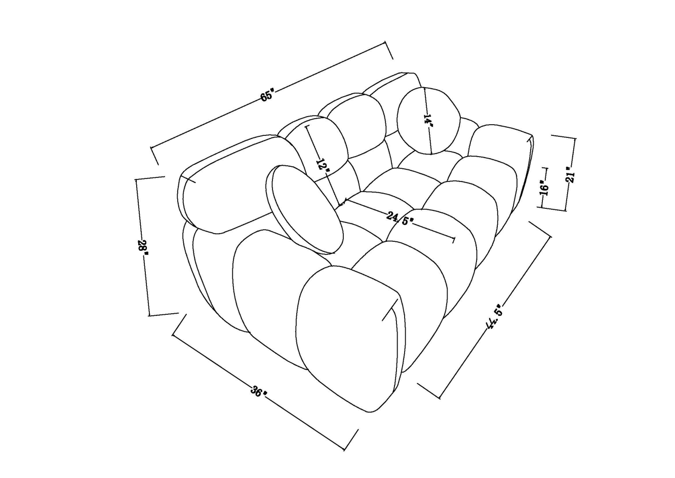 - 64.96 length ,35.83" deepth ,human body structure for USA people, marshmallow sofa,boucle sofa beige color,3 seater