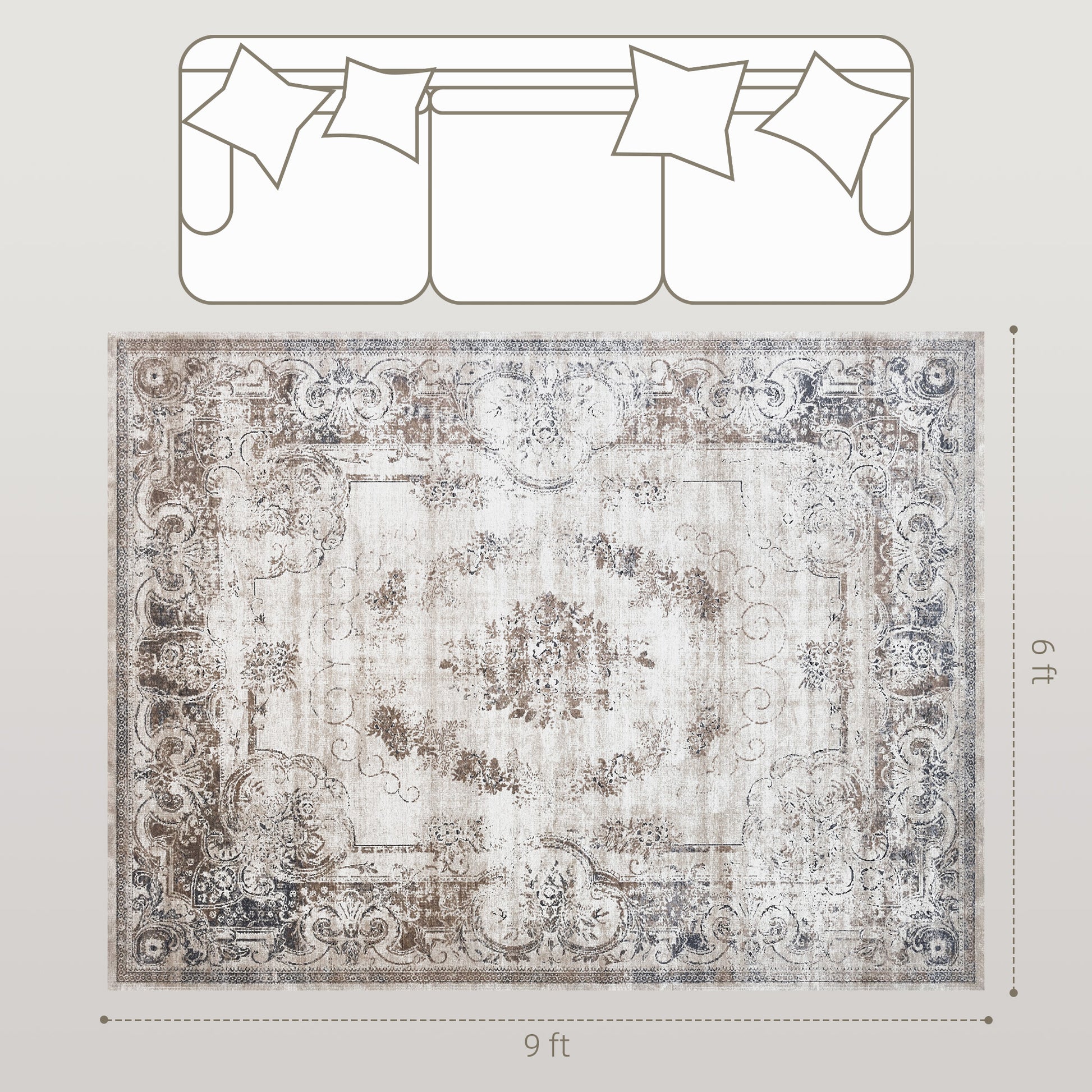 6x9 Boho Area Rug, Machine Washable Carpet For Living Room, Bedroom, Dining Room, Kitchen, Home Office, Brown