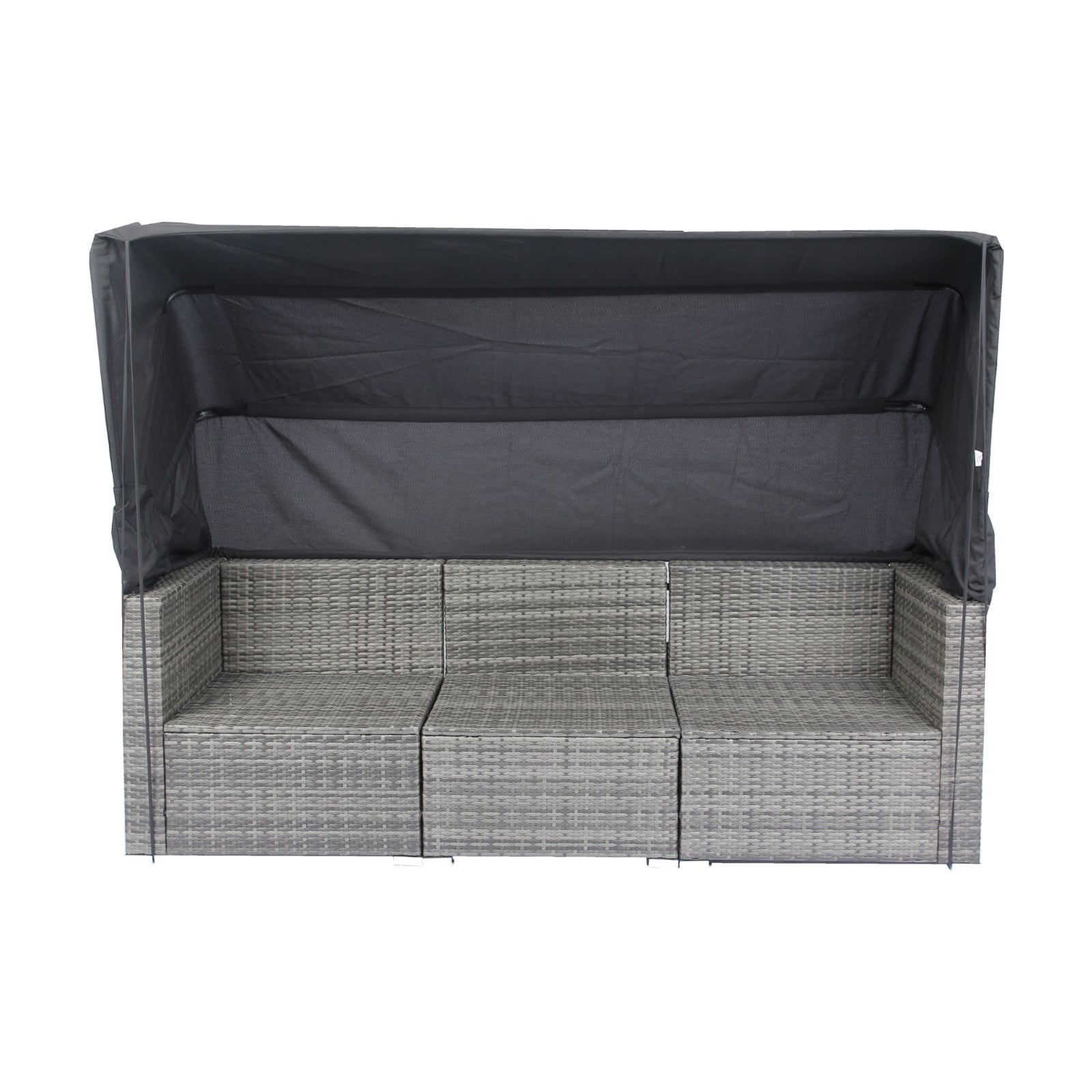 7-Piece Patio Furniture Set w/Retractable Canopy Wicker Rattan Sectional Sofa Set Patio Furniture with Washable Cushions for Lawn, Garden, Backyard, Poolside Grey wicker + Black Cushion