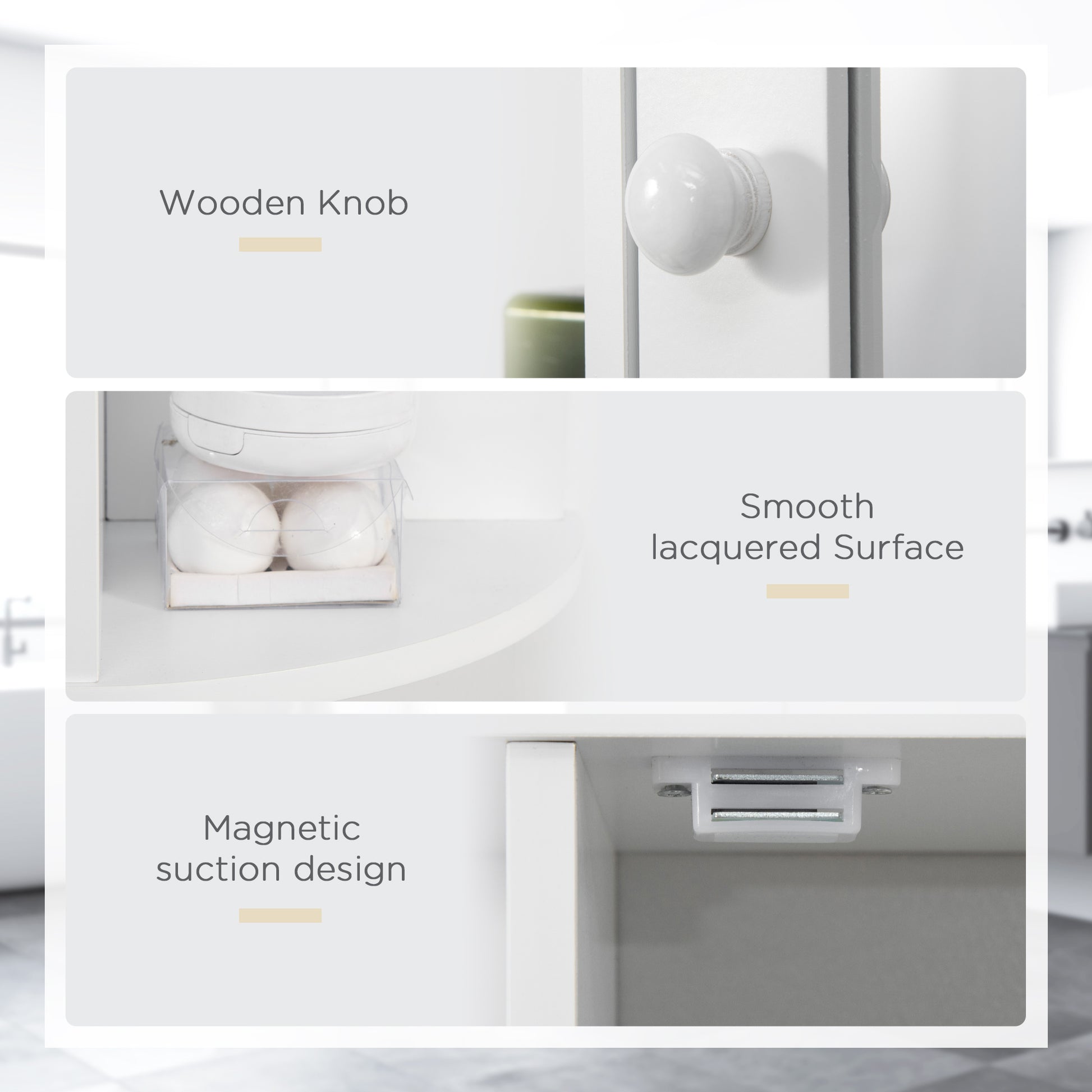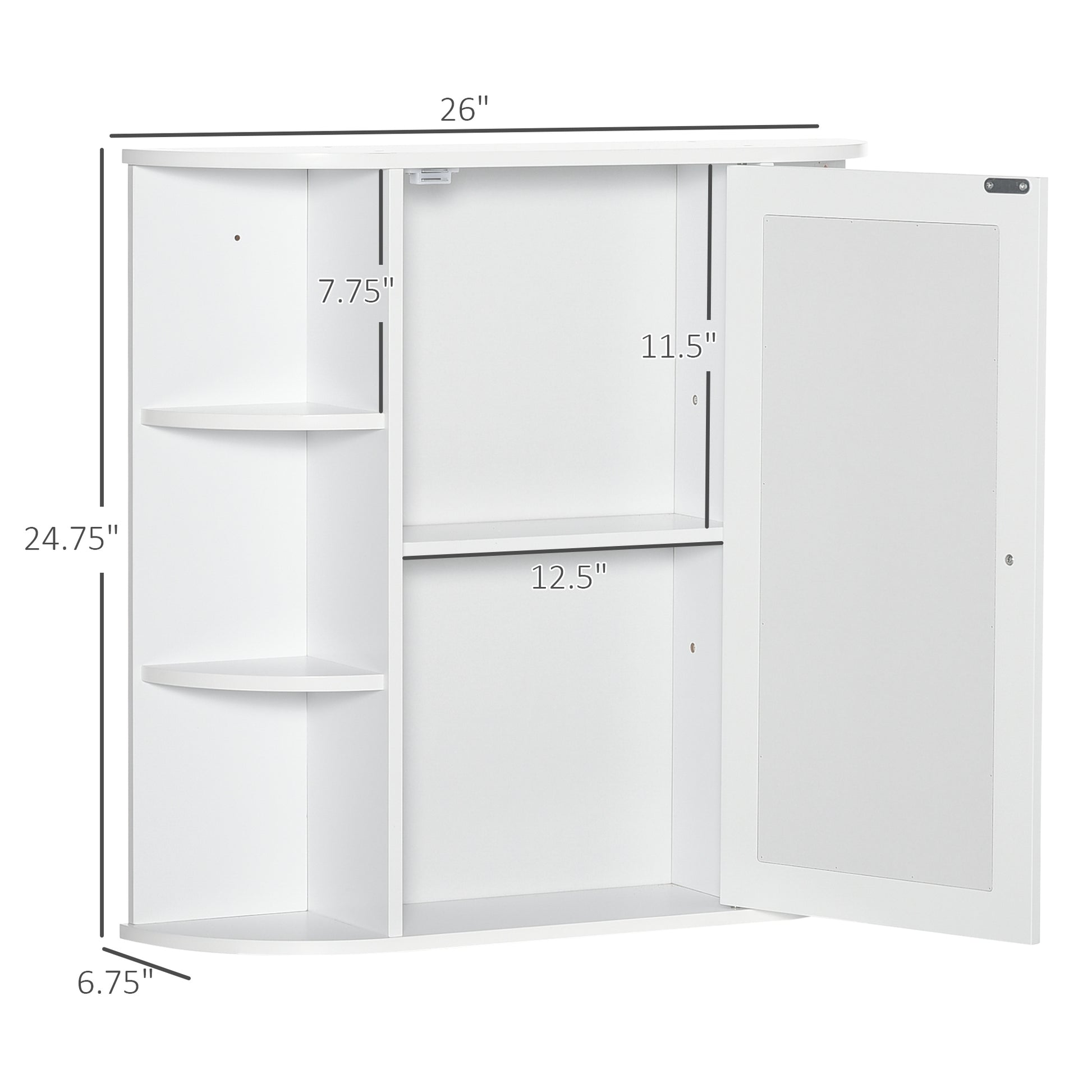 Expand the storage capacity with this bathroom cabinet by HOMCOM. This bathroom vanity mirror with storage features multiple shelves to store all your essentials: soaps, towels, tissues, etc. and equipped with a central mirror, you can make up in front of the cabinet or check your outfit before going out. The cabinet won't take much room and can keep your bathroom clean and organized. Features: - Two open sets of three shelves on either side of the storage cabinet - Mirrored door for makeup prep and outfit checking - Top ledge allows for personalizing your space - Wall-mounted cabinet keeps your floor clear of storage - Wood knob for easy access to inside the bathroom cabinet Specification: - Overall Dimension: 26" W x 6.75" D x 24.75" H - Material: P2 class MDF, Glass - Color: White - Each Shelf Size: 6" W x 6.25" D x 7.75" H - Mirror Dimension: 8.75" W x 20" H - Internal Shelf Dimension: 12.5" W x 5.75" D x 11.5" H - Weight Capacity: (shelf) 11 lbs., (top panel) 22 lbs. Save space with behind-mirror storage. Provide a spot for your bathroom essentials that allows a widespread number of items, from face creams to make-up tubes and more. The generous size consists of a double-door front that covers two sections, and an extra bottom shelf, making for a wall cabinet ideal to accommodate shared households. Maximize bathroom storage with a kleankin mirrored medicine cabinet. Features: - Wall-mounted design is space-saving - Wide cabinet with double doors and several shelves to store your beauty products and daily hygiene items - Mirror outside for better preparation during your morning routine - Made of stainless steel for sturdy construction - Equipped with crash pads to protect the cabinet when closing the door - Assembly required Specification: - Color: Jet Black - Material: Stainless Steel, Glass - Overall Dimensions: 23.5" W x 5.25" D x 27.5" H - Small Mirror Size: 8.75" W x 18.75" H - Large Mirror Size: 14.25" W x 18.75" H - Left Shelf Size: 14.25" W x 3.5" D x 9.25" H (each tier) - Right Shelf Size: 8.75" W x 3.5" D x 6.25" H, 8.75" W x 3.5" D x 12.5" H (from top to bottom) - Bottom Open Shelf Size: 23.5" W x 4.25" D x 8.75" H - Weight Capacity: 55 lbs. (total), 11 lbs. (each shelf) - Item Label: 834-550V00BK Package Includes: - 1 x Mirror Cabinet - 1 x Manual Maximize your bathroom's style and storage with a bathroom wall cabinet from HOMCOM. This chic, space-saving solution features a 2-tier cabinet with adjustable shelving and an open shelf to help stow essentials. Its modern white finish, recessed panels, and oak-toned top blend functionality with elegance, making it a great wall mount cabinet for any contemporary space. Features: - Wall-mounted design saves valuable floor space - Two-tier cabinet with an adjustable shelf that optimizes storage options - Open shelf allows for easy access to frequently used items - Modern style enhances bathroom aesthetics - Painted MDF ensures durability and easy maintenance - Assembly required Specification: - Color: White, Oak Tone - Material: MDF - Overall Dimensions: 23.6" W x 7.5" D x 28" H - Cabinet Inner Size: 20.1" W x 5.7" D x 8.5" /8.8" H - Bottom Shelf Size: 20.3" W x 6.9" D x 8.5" H - Weight Capacity: 22 lbs. (Total), 6.6 lbs. (Shelf) - Item Label: 837-513V80WT Package Includes: - 1 x Bathroom Wall Cabinet - 1 x Manual.