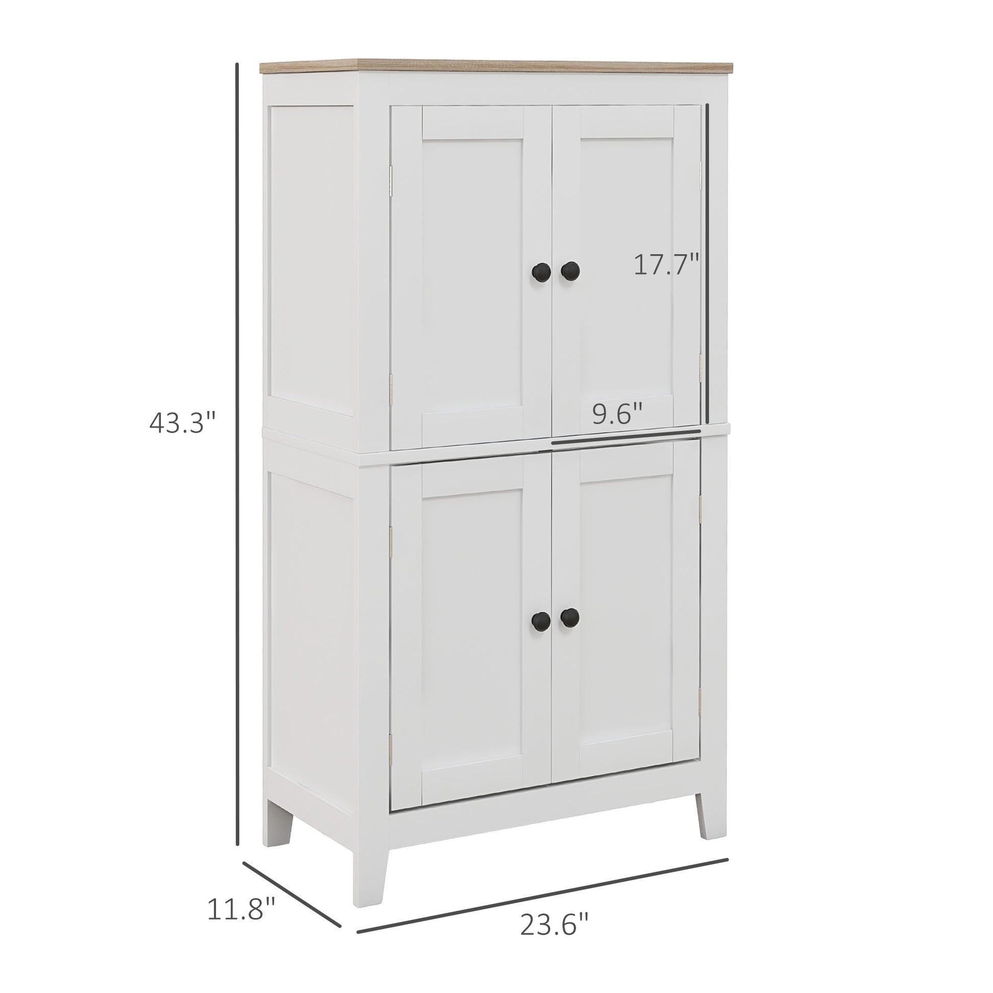 Maximize your bathroom space with a chic storage cabinet from HOMCOM. This freestanding bathroom cabinet keeps towels and essentials tidy. It features a 4-tier shelf in two cabinets and 3-level adjustable shelving. Enjoy the safety of the anti-tipping design and the elegance of a white finish with an oak top. Embrace a clutter-free space with this stylish and functional bathroom floor storage cabinet. Features: - Four-tier shelf in two cabinets to maximize storage space - The three-level adjustable shelf customizes storage in each cabinet - Anti-tipping design to attach it to the wall - The painted white finish and oak top offer stylish durability - Magnetic doors for secure closure and round handles for easy access - Elevated legs prevent moisture damage - Assembly required Specification: - Color: White, Oak - Material: MDF - Overall Dimensions: 23.6" W x 11.8" D x 43.3" H - Top Cabinet Inner Size: 22.1" W x 10.2" D x 8.7" /8.7" H - Bottom Cabinet Inner Size: 22.1" W x 10.2" D x 9.1" /8.3" H - Bottom Height to Floor: 2.7" H - Weight Capacity: 297 lbs. (Total), 59 lbs. (Shelf) - Item Label: 834-726V80WT Package Includes: - 1 x Bathroom Cabinet - 1 x Manual.