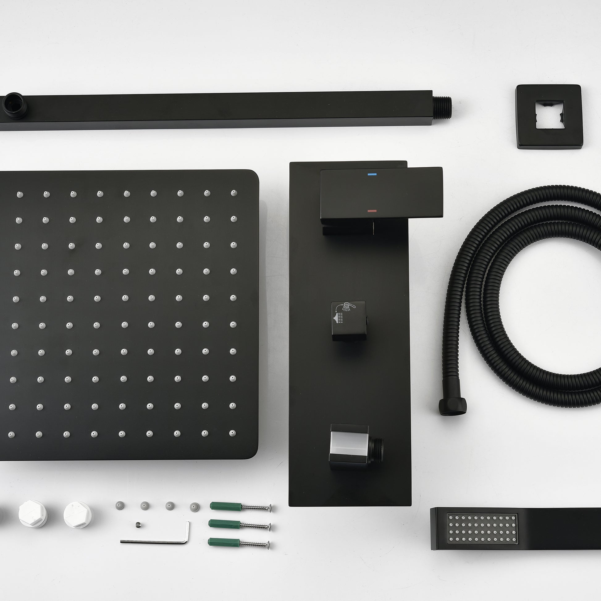 Brass Matte Black Shower Faucet With Shower System, 10 Inch Shower Head And Handheld Spray Bathroom Deluxe Faucet Combination