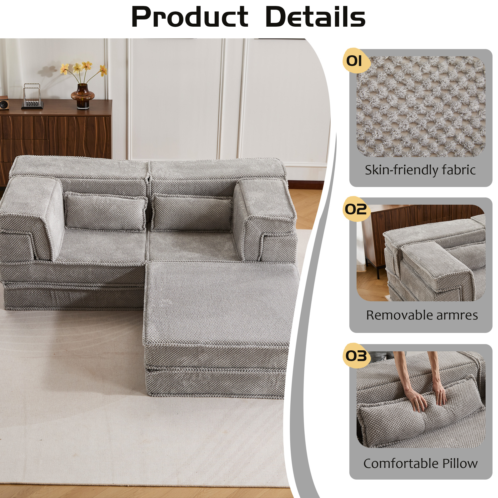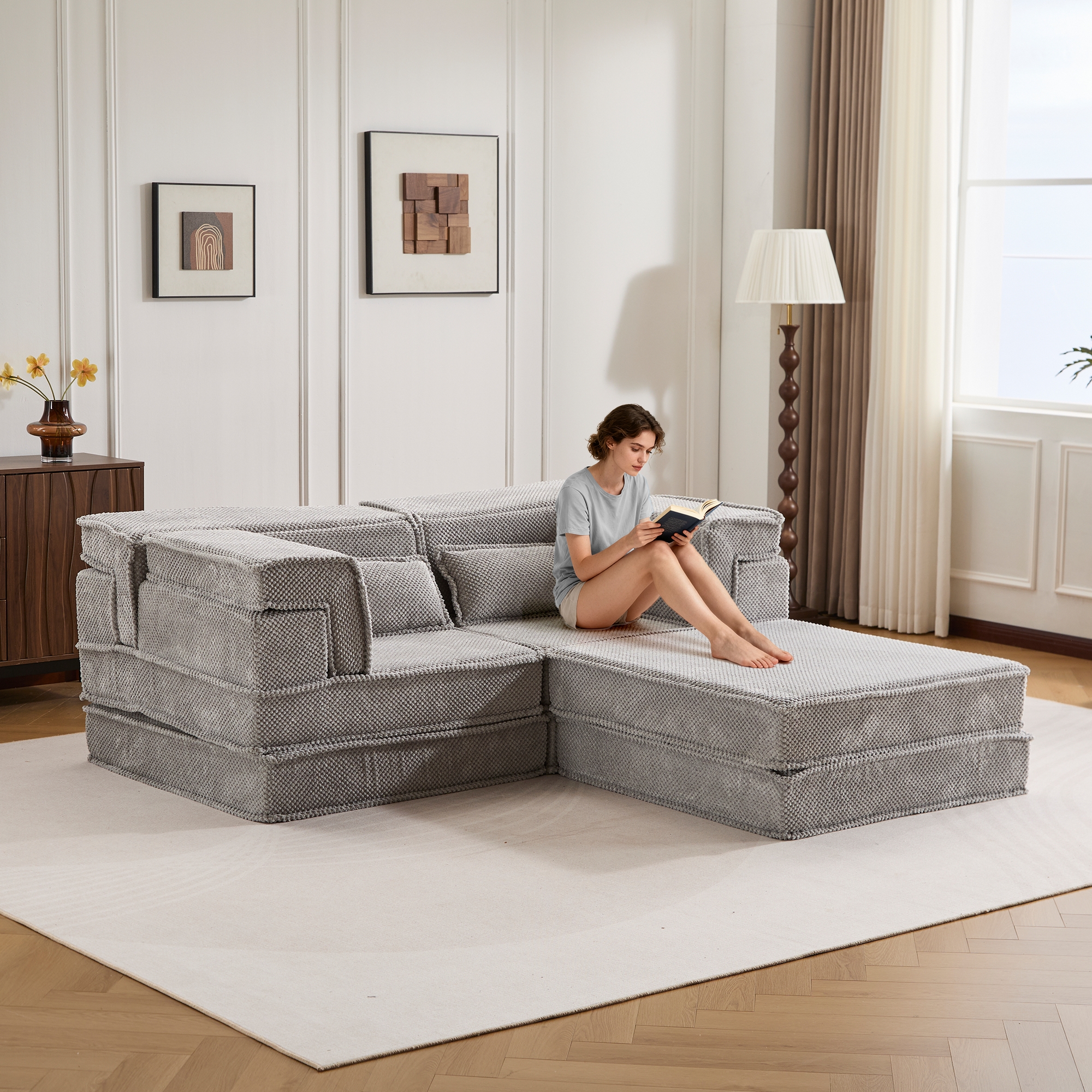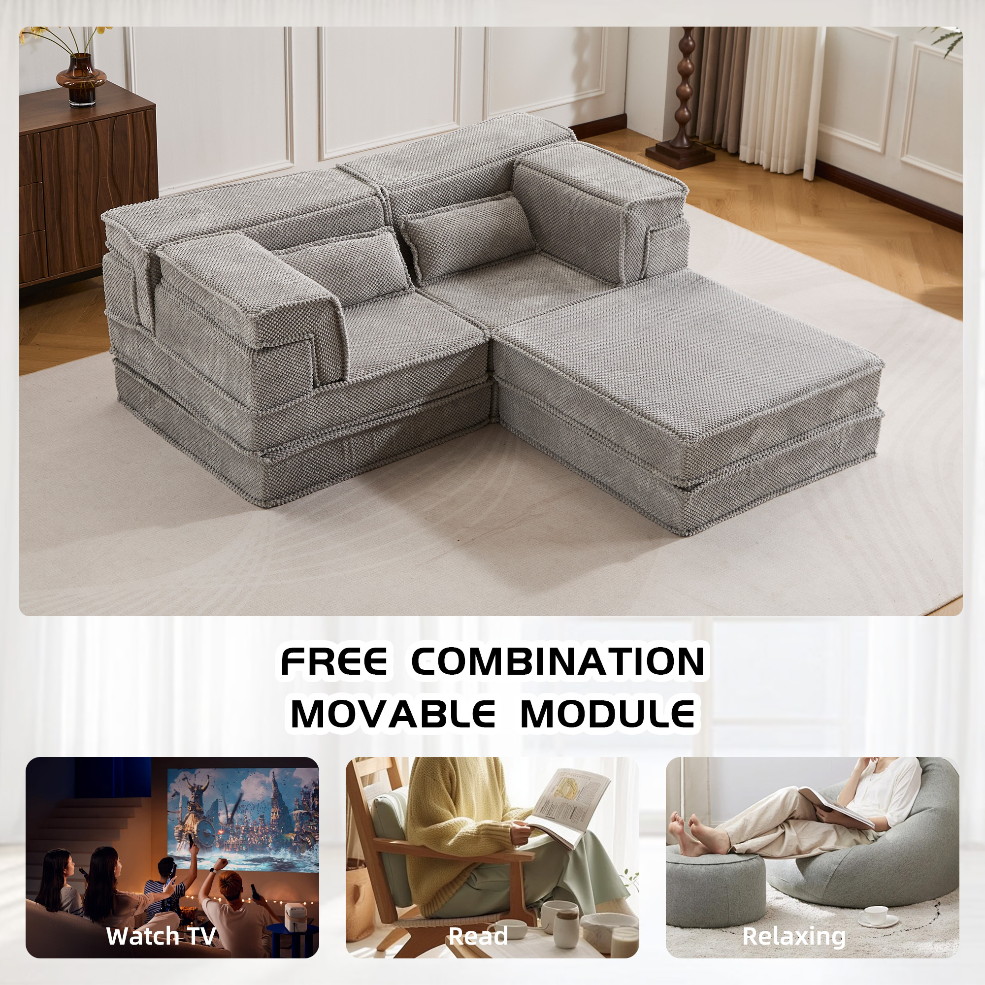 - ăHigh-quality Circle fleece FabricăThis Convertible Modular Sectional mahjong sofa is wrapped in soft, textured and comfortable Circle fleece fabric thatâs pet friendly and easy to clean, delivering cozy comfort and a warm, inviting look.