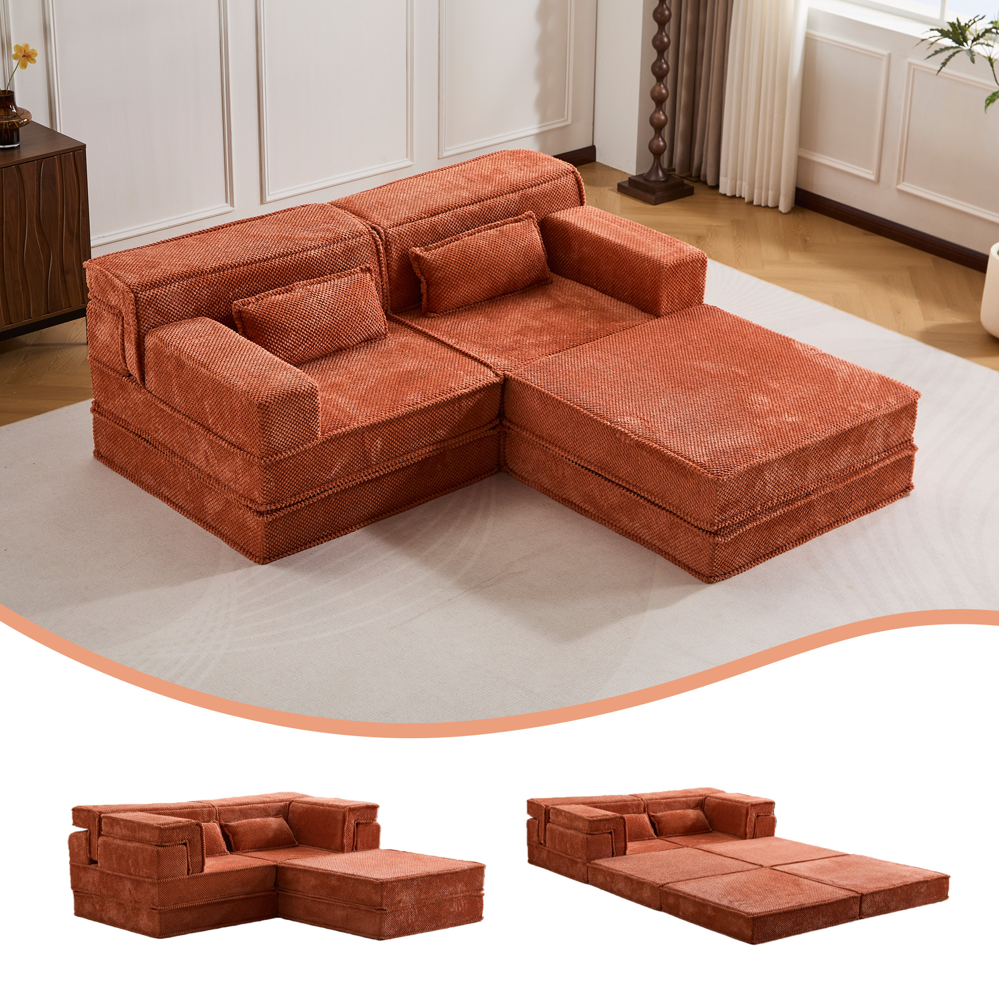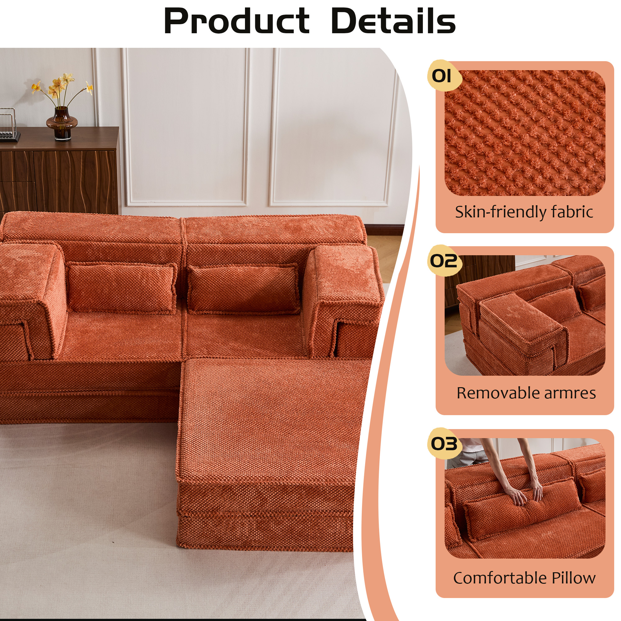 Product Name:Compression Mahjong Sofa,Convertible Floor Sofa Bed,DIY Boneless Modular Sectional Sofa,No Assembly Required,Circle fleece fabric,Oversized 2 Seater with 1 Ottoman,Orange