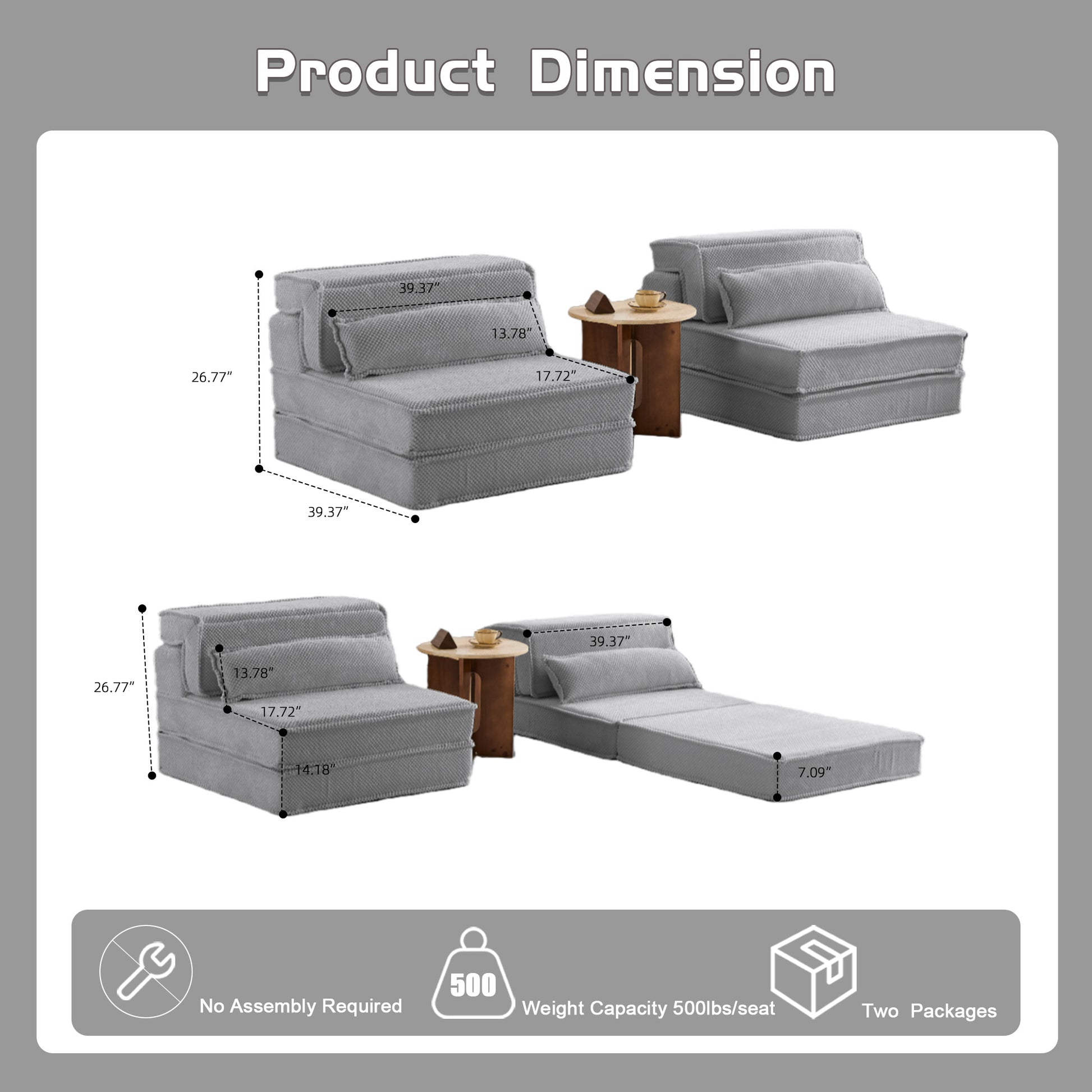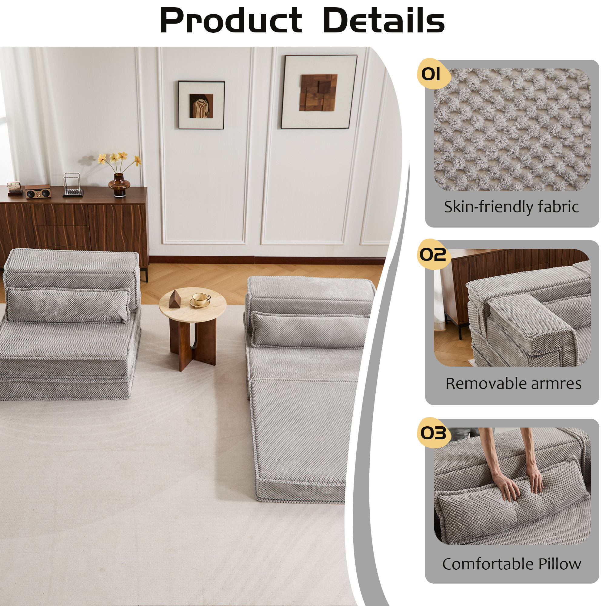 Product Name:Compression Mahjong Sofa,Convertible Floor Sofa Bed,DIY Boneless Modular Sectional Sofa,No Assembly Required,Circle fleece fabric,Oversized 2 Seater with 2 Pillows,Light-grey