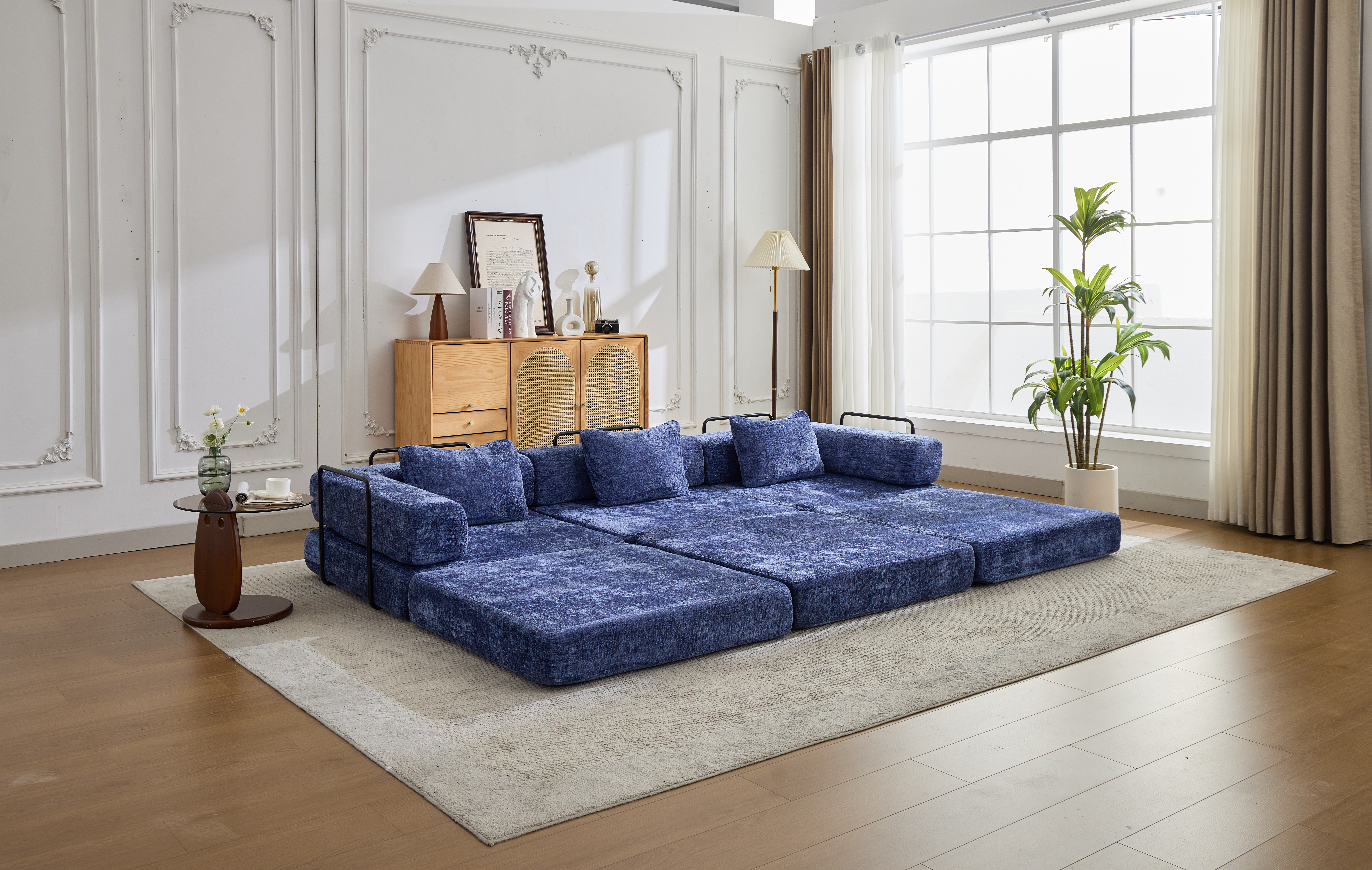 - ăDIY Modular Sectional Designă: Easily rearrange and combine sections to create multiple configurationsâchaiseďźa spacious 3 seaters couch, or a cozy sleeper floor bed. Perfect for changing spaces or multifunctional rooms.