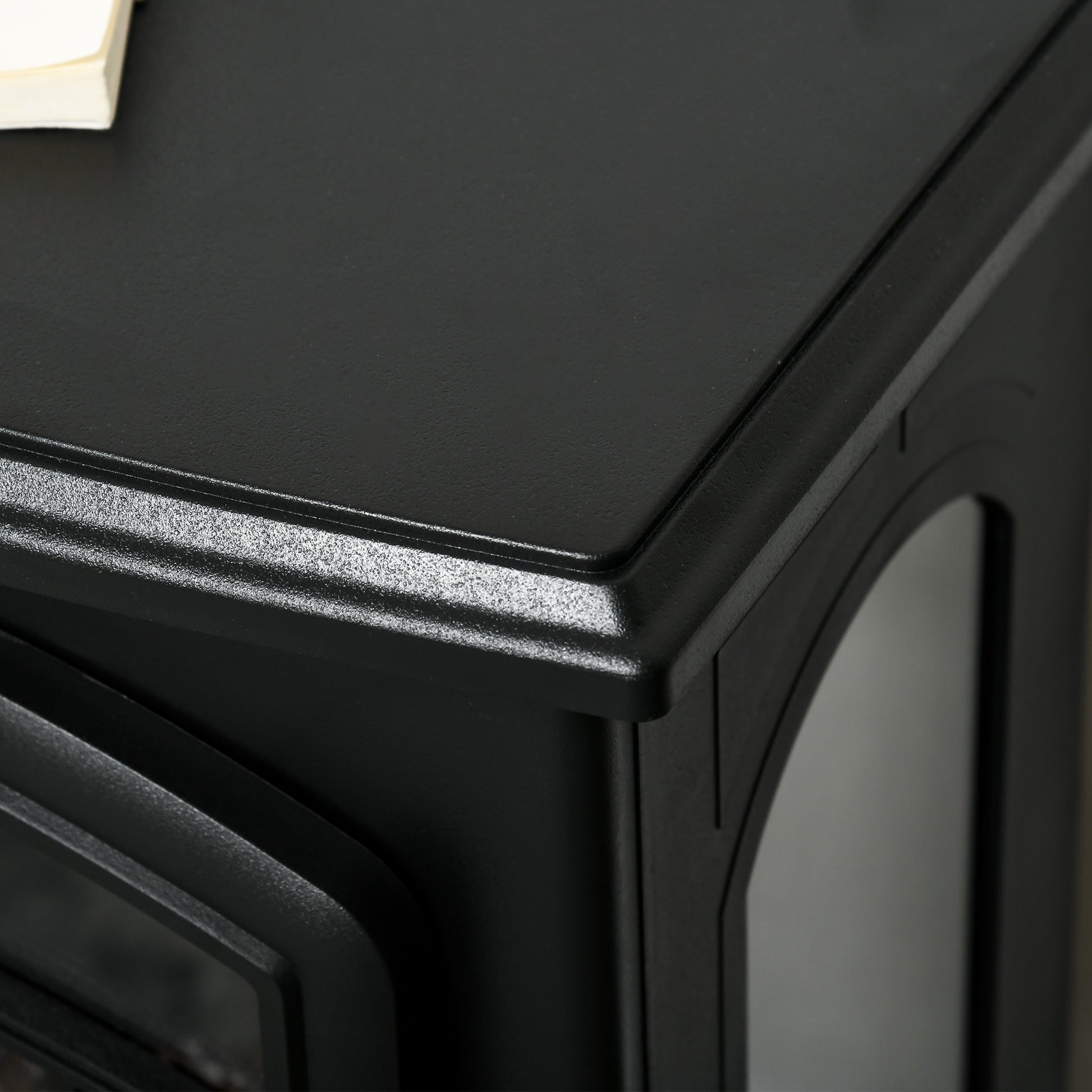 Say goodbye to sparks and kindling; our HOMCOM electric stove heater makes a statement in your space without maintenance or hazards. We provide the warmth and glow of a real hearth, making our freestanding electric fireplace a safe focal point. Things are about to get cozy, be it a family game night, dinner party, or film date. Turn the heat on during colder months, and keep the heat off in warmer months. For a fireplace, HOMCOM is the obvious choice for your family's warmth. Features: - Convection for heating uniformity. Two adjustable heating modes (750 W/1500 W) and adjustable temperature (50℉-95℉) - Independent flame effect with stepless adjustable brightness and a log like look - Three sides glasses give 180 degrees of observation - Designed for year-round use, the flame can be used with or without heat - Auto-shut off for overheat protection to prevent fire or serious household damage - Low working noise (lower than 55dB) - Assembly required Specification: - Color: Black - Materials: ABS, Glass - Overall Dimensions: 15.4" W x 9.4" D x 22.4" H - Front Window Size: 9.1" W x 8.7" H - Coverage Area: 161-323 ft² - Adjustable Temperature: 50℉-95℉ - Cord Length: 5.9' L - Presentation: Freestanding - Power Output: 750 W / 1500 W - Rated: 120 V/ 60 Hz, 1500 W / 12.5 A - Heat Output: 5115 BTU/h - Working Noise: ≤55dB - Item Label: 820-356V80BK Package Includes: - 1 x Electric Fireplace Stove - 1 x Manual.