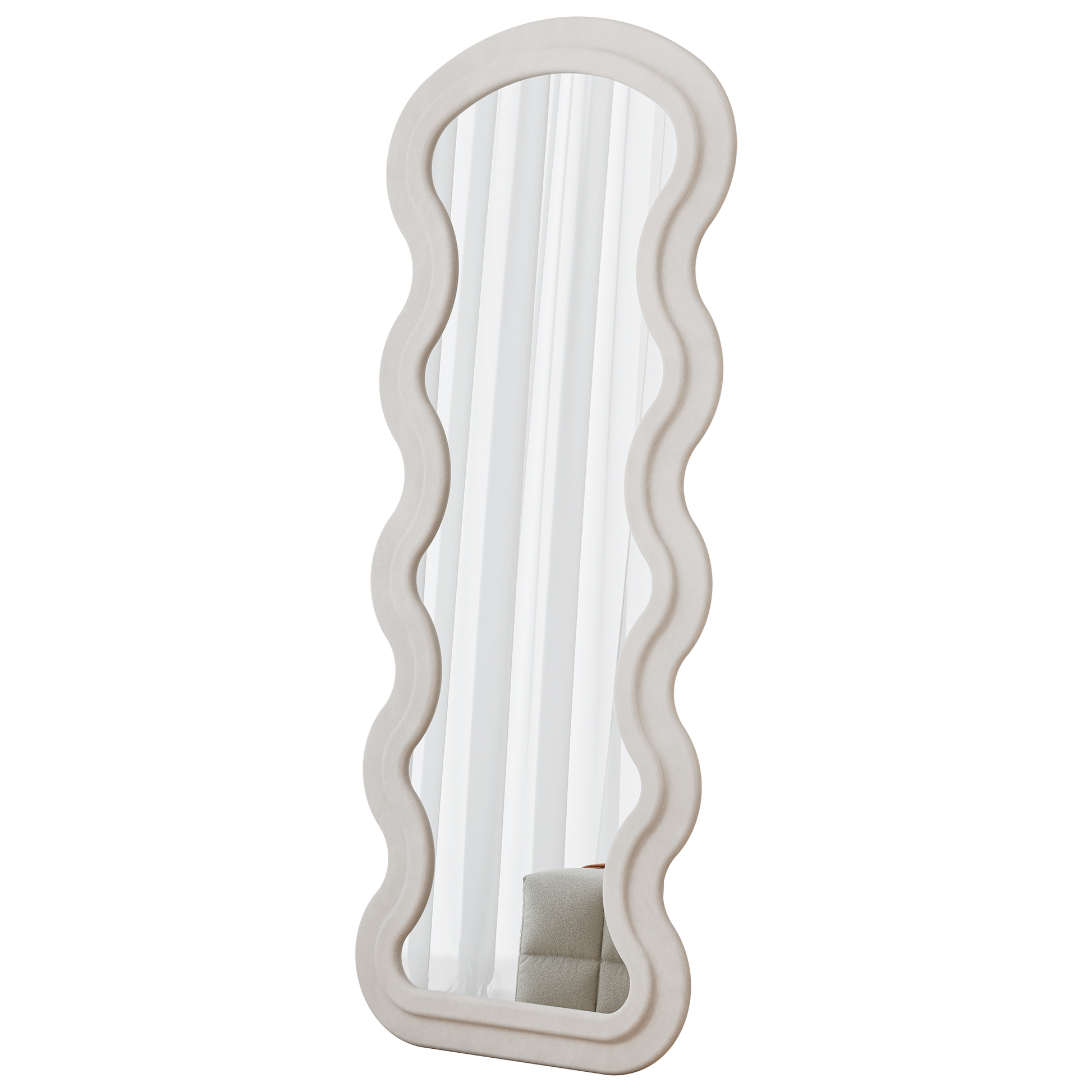 Product Name:Flannel Full Length Wave Floor Mirror for Bedroom living room Hanging or Against The Wall(white)