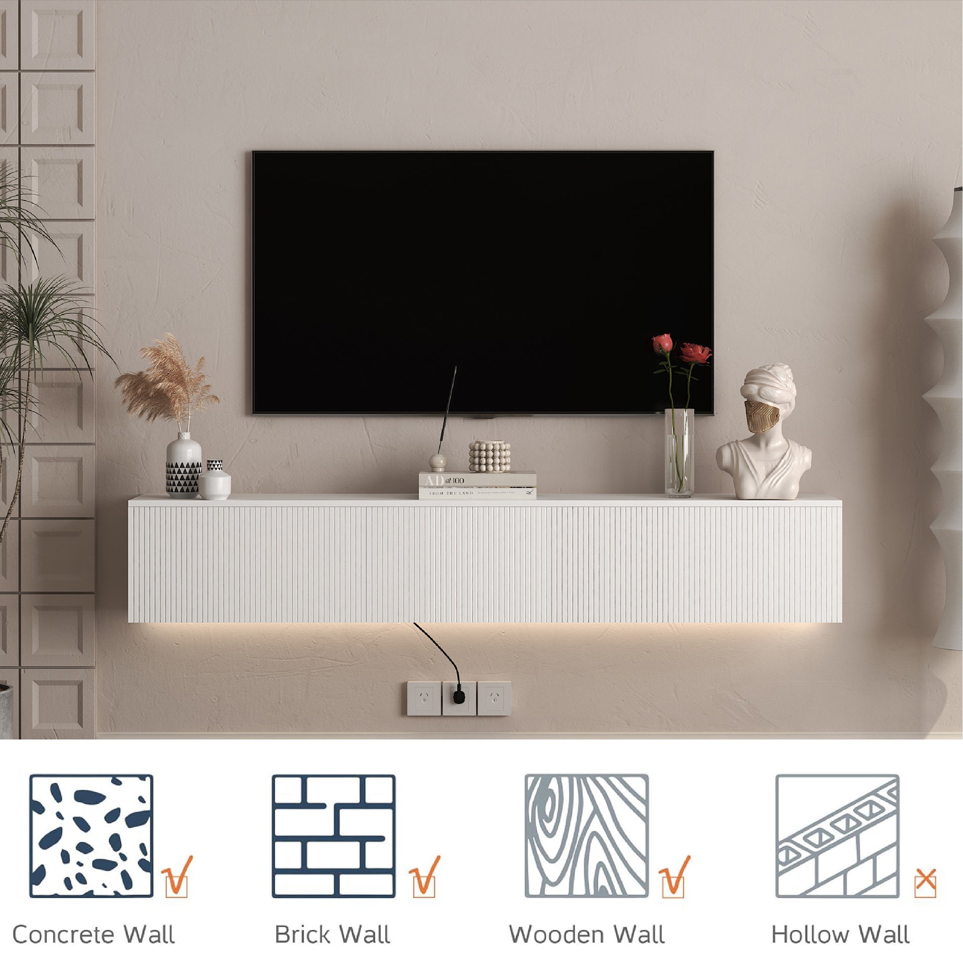 Floating TV Stand Wall Mounted With 16 Color LEDs, Modern TV Stand, Floating TV Cabinet Entertainment Center For 55 60 65 Inch TV