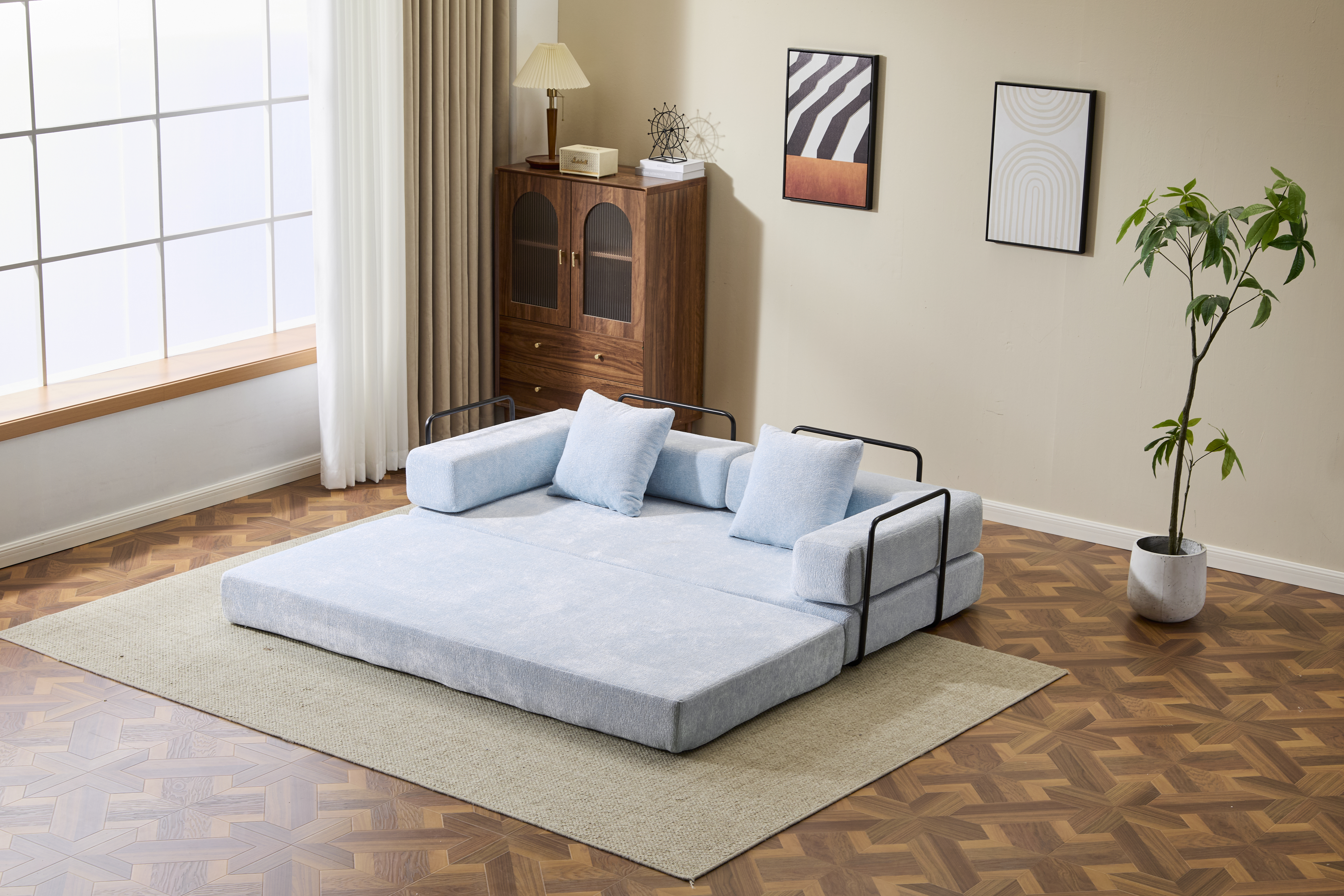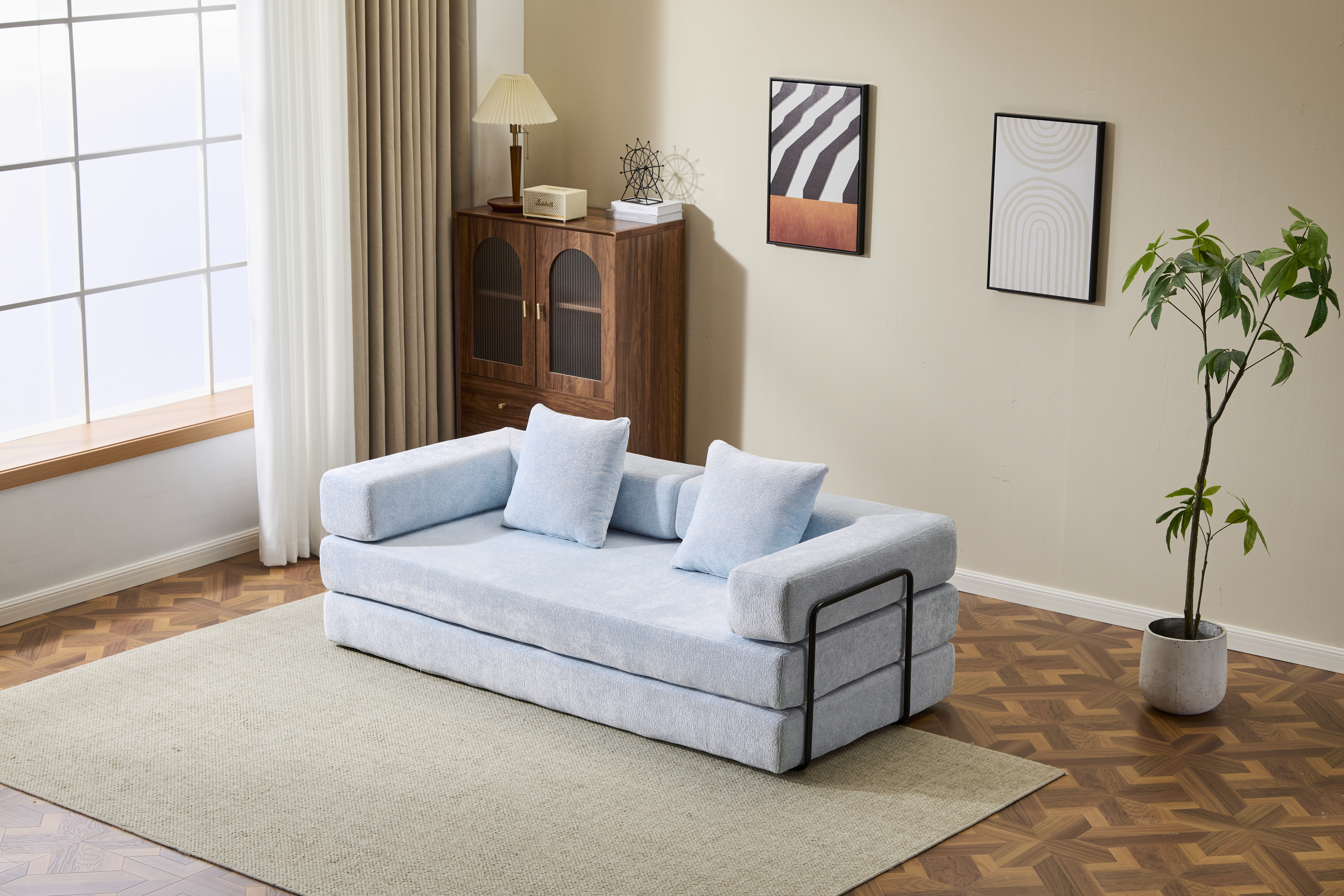 Product Name:Floor Couch,Compression Sofa,Convertible Floor Sofa Bed-with Pillow Back Support Armrest,Comfy Futon Couch Lounge Sleeper Bed,Chenille fabric,for Living Room Bedroom (LIGHT-BLUE)
