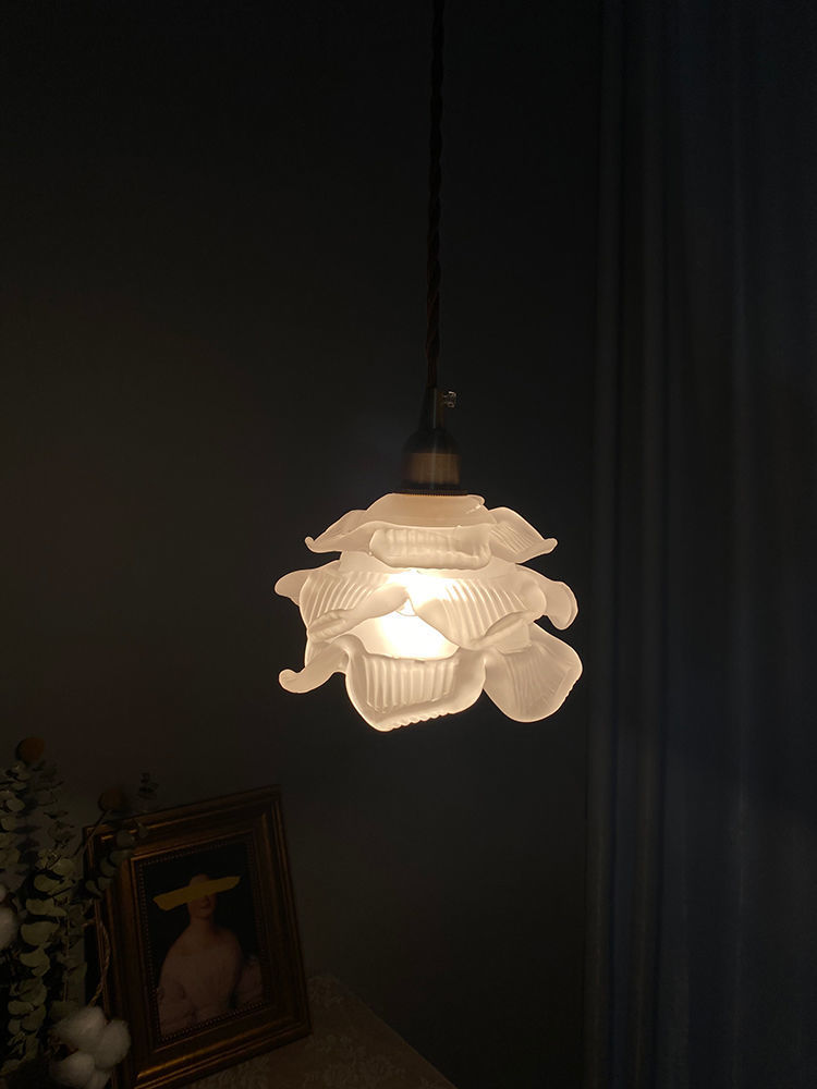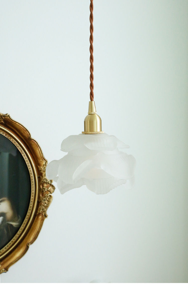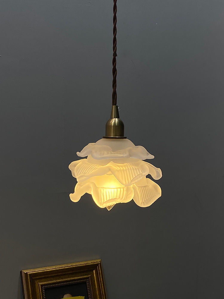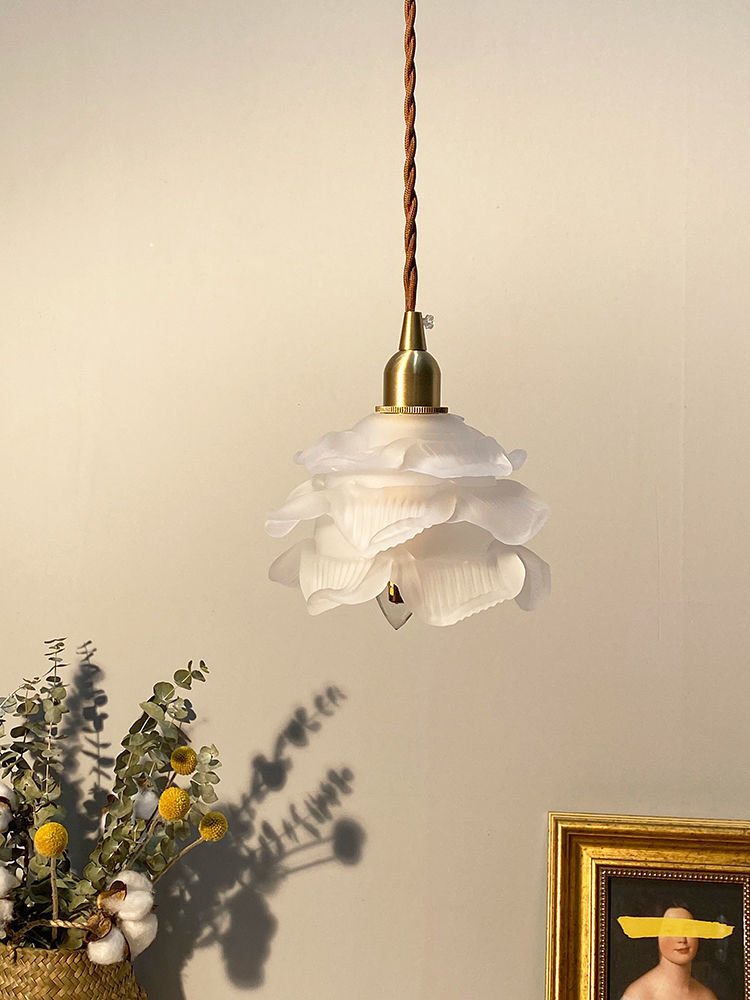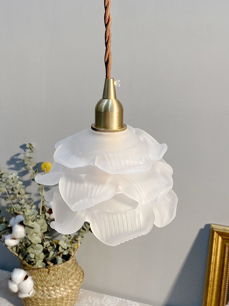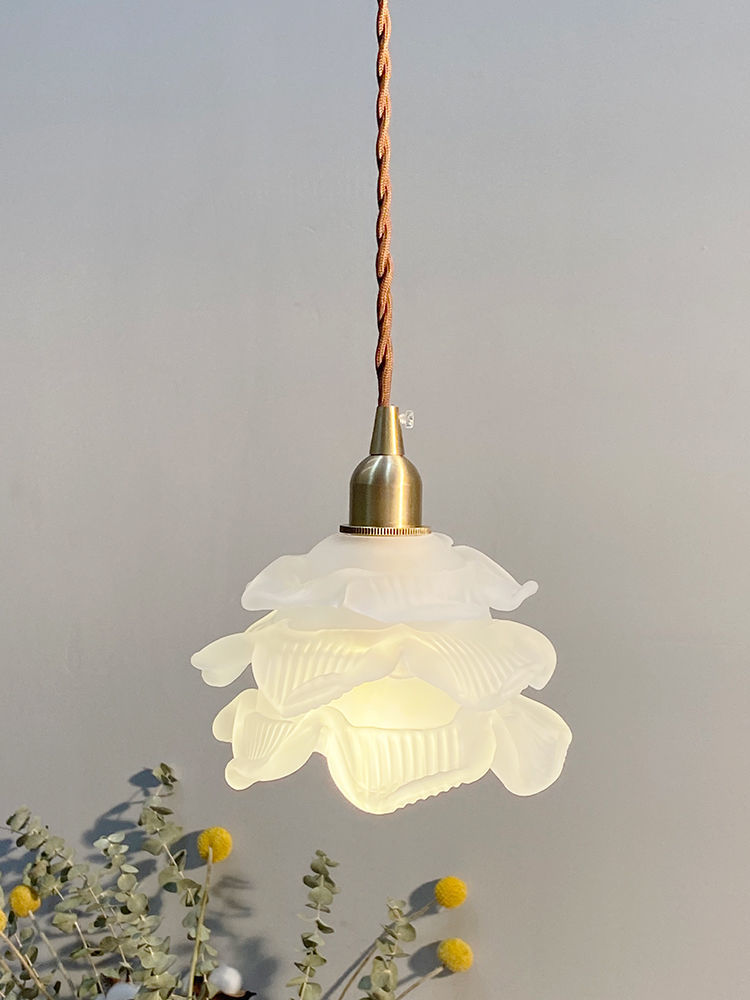 French Flower Glass Brass Small Chandelier Japanese Simplicity