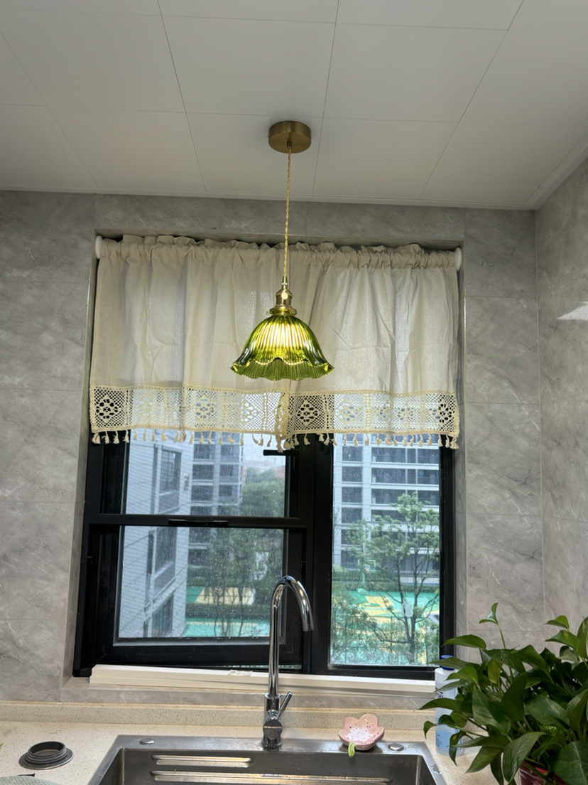 Light color: Model A small transparent pendant light - fresh, Model A small dark green pendant light - classic, Model B large transparent pendant light - fresh, Model B large dark green pendant light - classic, Model A small dark green - wall lamp, Model A small transparent - wall lamp, Three-head large dark green long tray 70cm walnut color combination