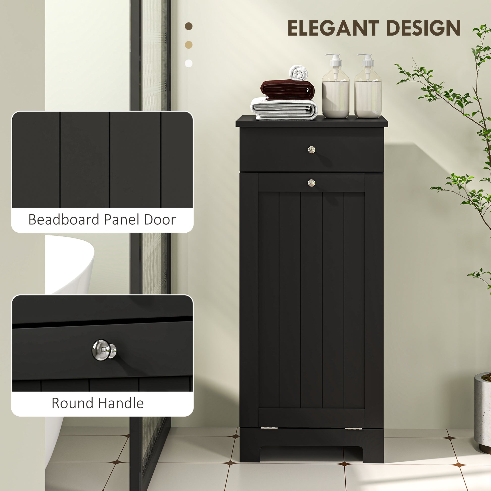 Transform your laundry routine with the HOMCOM laundry hamper cabinet! This stylish unit features a tilt-out hamper and folding cloth bag for easy sorting. Its beadboard panel door and round handle add a modern touch to any room. Suitable as a hidden laundry hamper cabinet or a chic laundry basket cabinet, keeping your space tidy and organized. Features: - A tilt-out hamper simplifies laundry concealing - Cloth bag can be folded for easy storage when not in use - A drawer accommodates various small items - Anti-tipping design ensures stability and safety - Beadboard panel door and round handles enhance modern esthetic - Painted MDF surface offers durability and easy cleaning - Assembly required Specification: - Color: Black - Material: MDF - Overall Dimension: 15.7" W x 15" D x 35.4" H - Laundry Basket Inner Size: 12.2" L x 11.8" W x 25.2" H - Foldable Bog Size: 12.2" L x 11" W x 20.1" H - Drawer Inner Size: 12" L x 11.2" W x 3.3" H - Bottom Height to Floor: 1.8" - Weight Capacity: 92 lbs. (total), 20 lbs. (drawer), 22 lbs. (hamper) - Item Label: 834-773V80BK Package Includes: - 1 x Laundry Hamper Cabinet - 1 x Manual Transform your laundry routine with the HOMCOM laundry hamper cabinet! Features: - A tilt-out hamper simplifies laundry concealing - Cloth bag can be folded for easy storage when not in use - A drawer accommodates various small items - Anti-tipping design ensures stability and safety - Beadboard panel door and round handles enhance modern esthetic - Painted MDF surface offers durability and easy cleaning - Assembly required Specification: - Color: White - Material: MDF - Overall Dimension: 15.7" W x 15" D x 35.4" H - Laundry Basket Inner Size: 12.2" L x 11.8" W x 25.2" H - Foldable Bog Size: 12.2" L x 11" W x 20.1" H - Drawer Inner Size: 12" L x 11.2" W x 3.3" H - Bottom Height to Floor: 1.8" - Weight Capacity: 92 lbs. (hamper) - Item Label: 834-773V80WT Package Includes: - 1 x Laundry Hamper Cabinet - 1 x Manual.