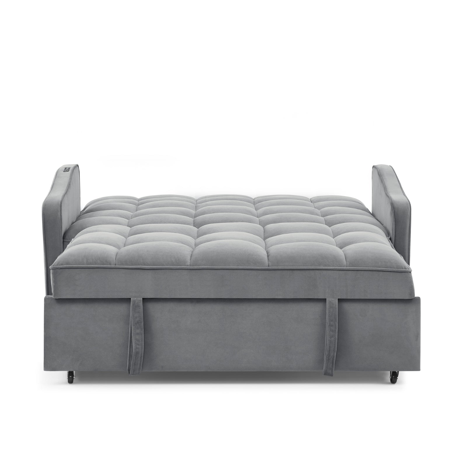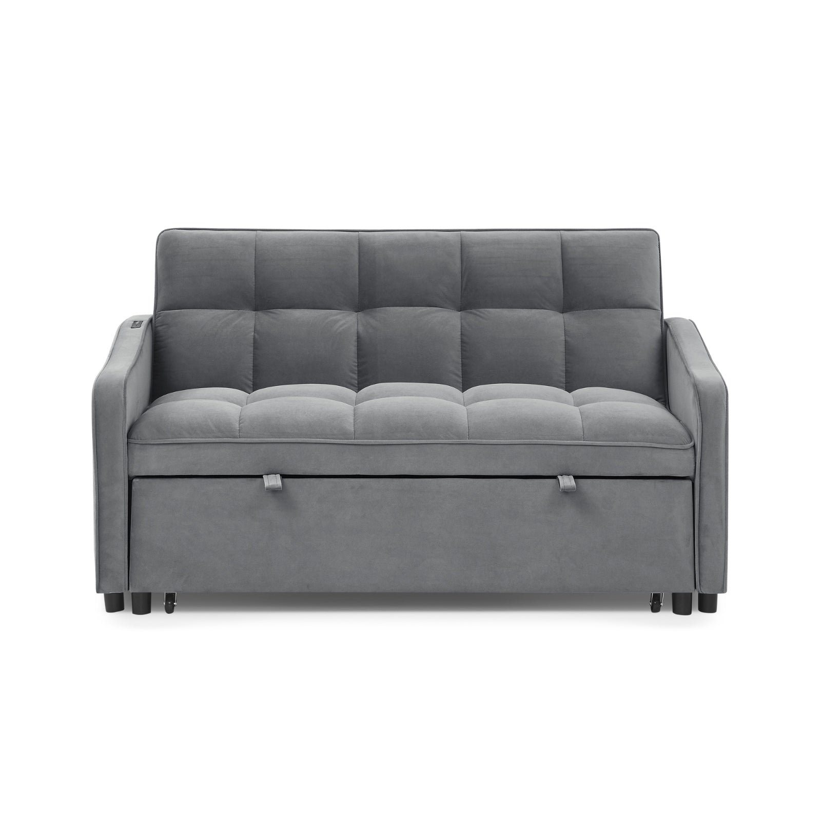 Loveseats Sofa Bed with Pull-out Bed,Adjsutable Back and Two Arm Pocket,TypeC and USB Charging with Copper nail,Grey (47\x53\x31\)