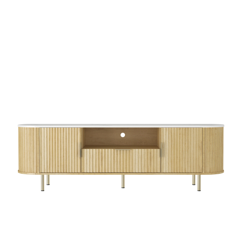 - The corners of Entertainment Center TV Cabinet with Drawer are designed with smooth, rounded edges, enhancing safety and convenience by minimizing the risk of accidental bumps during daily use. This design not only improves the safety of the furniture but also enhances the overall aesthetic and comfort of Media Console Table.