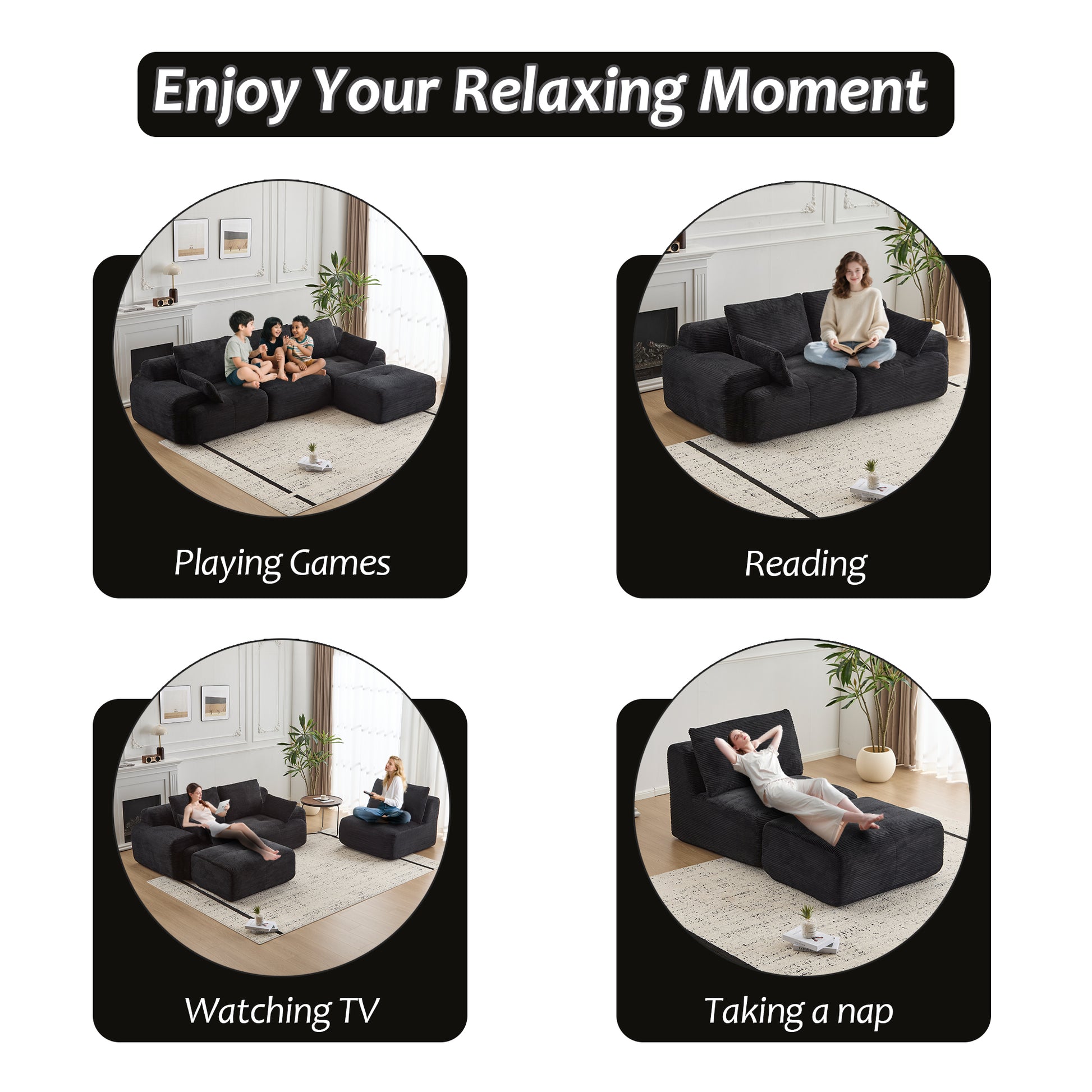 Product Name:Modern Memory Foam Compressed Sofa,Large Sectional Couches for Living Room,Pet-Friendly Cloud Modular Sectional Sofa,Corduroy Fabric,Extra Deep Loveseat,No Assembly required, Black