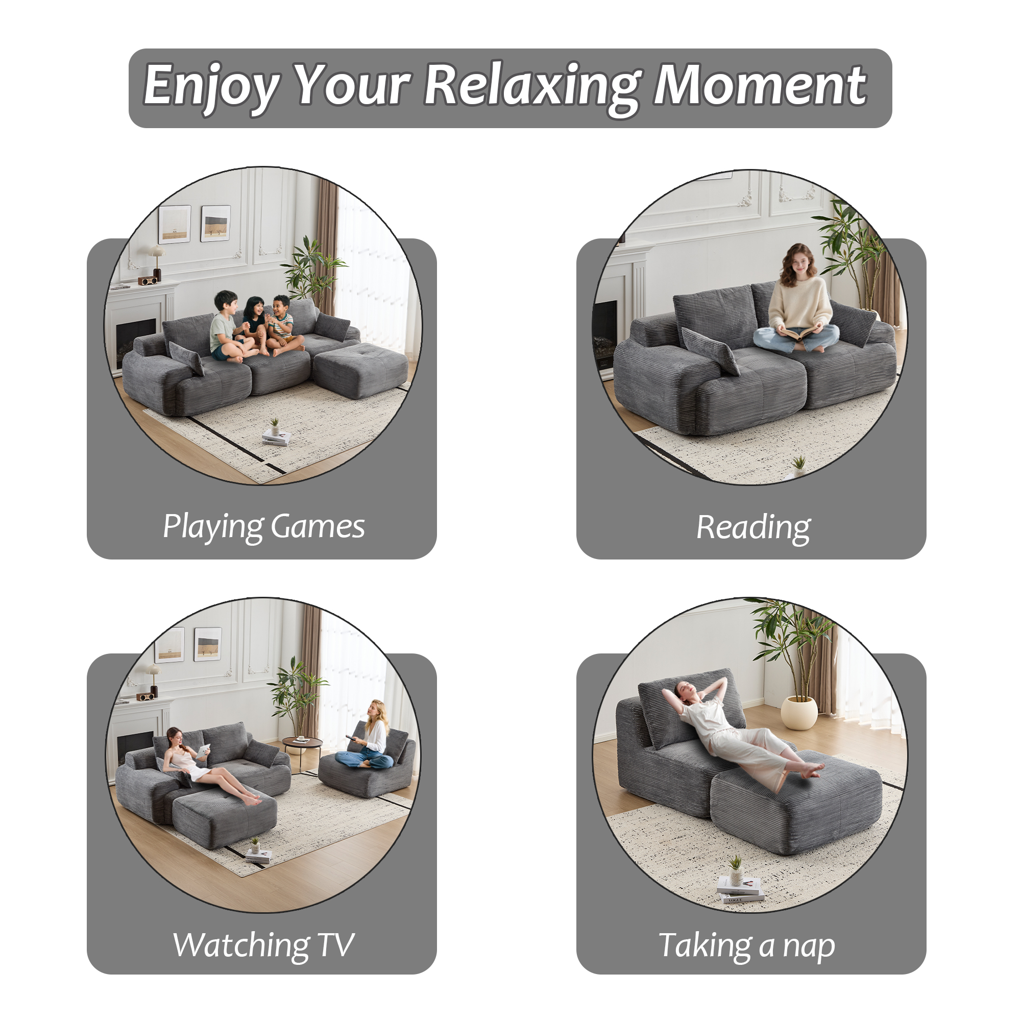 Product Name:Modern Memory Foam Compressed Sofa,Large Sectional Couches for Living Room,Pet-Friendly Cloud Modular Sectional Sofa,Corduroy Fabric,Extra Deep Loveseat,No Assembly required,GREY