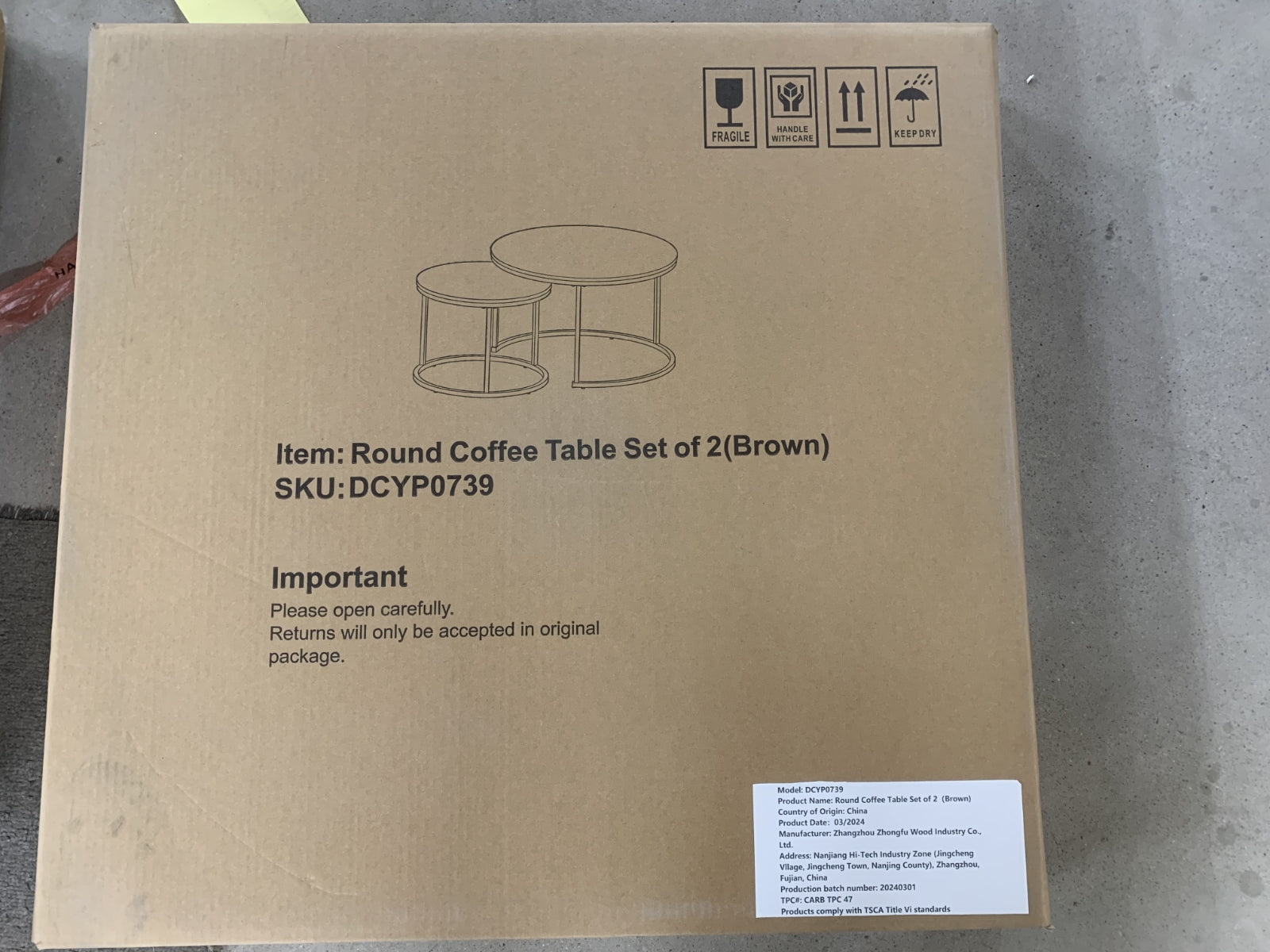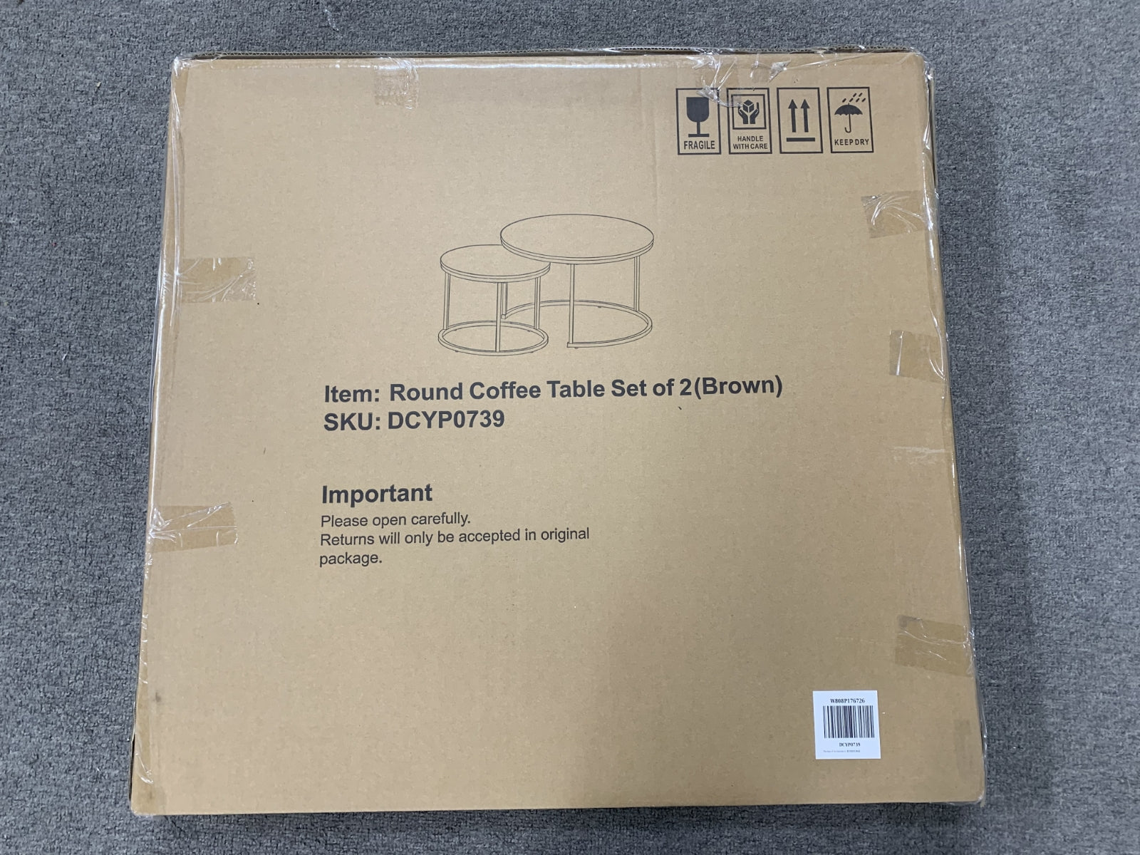 Nesting Coffee Table Set Of 2, 27.6inch Round Coffee Table Industrial Wood Finish With Sturdy Metal
