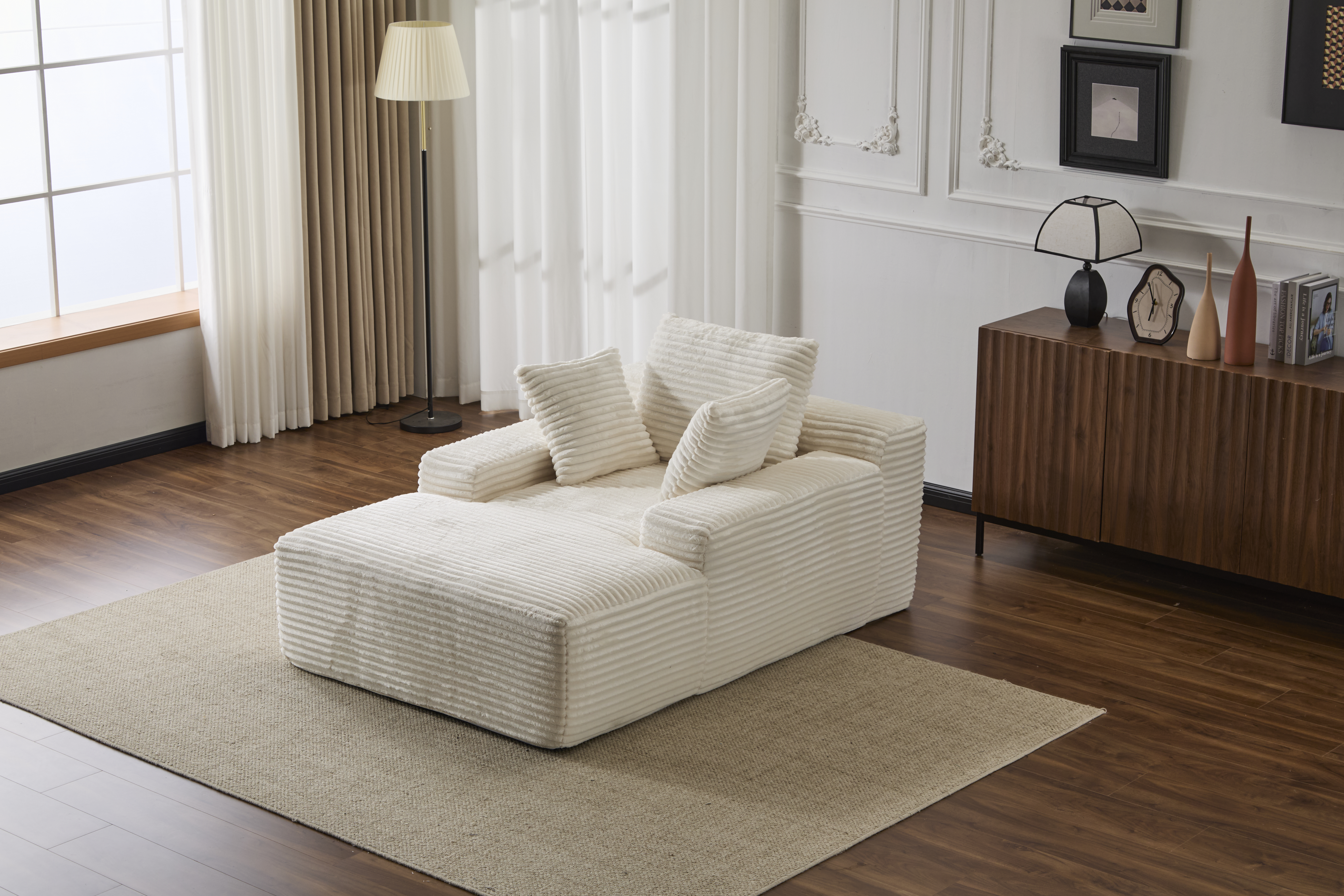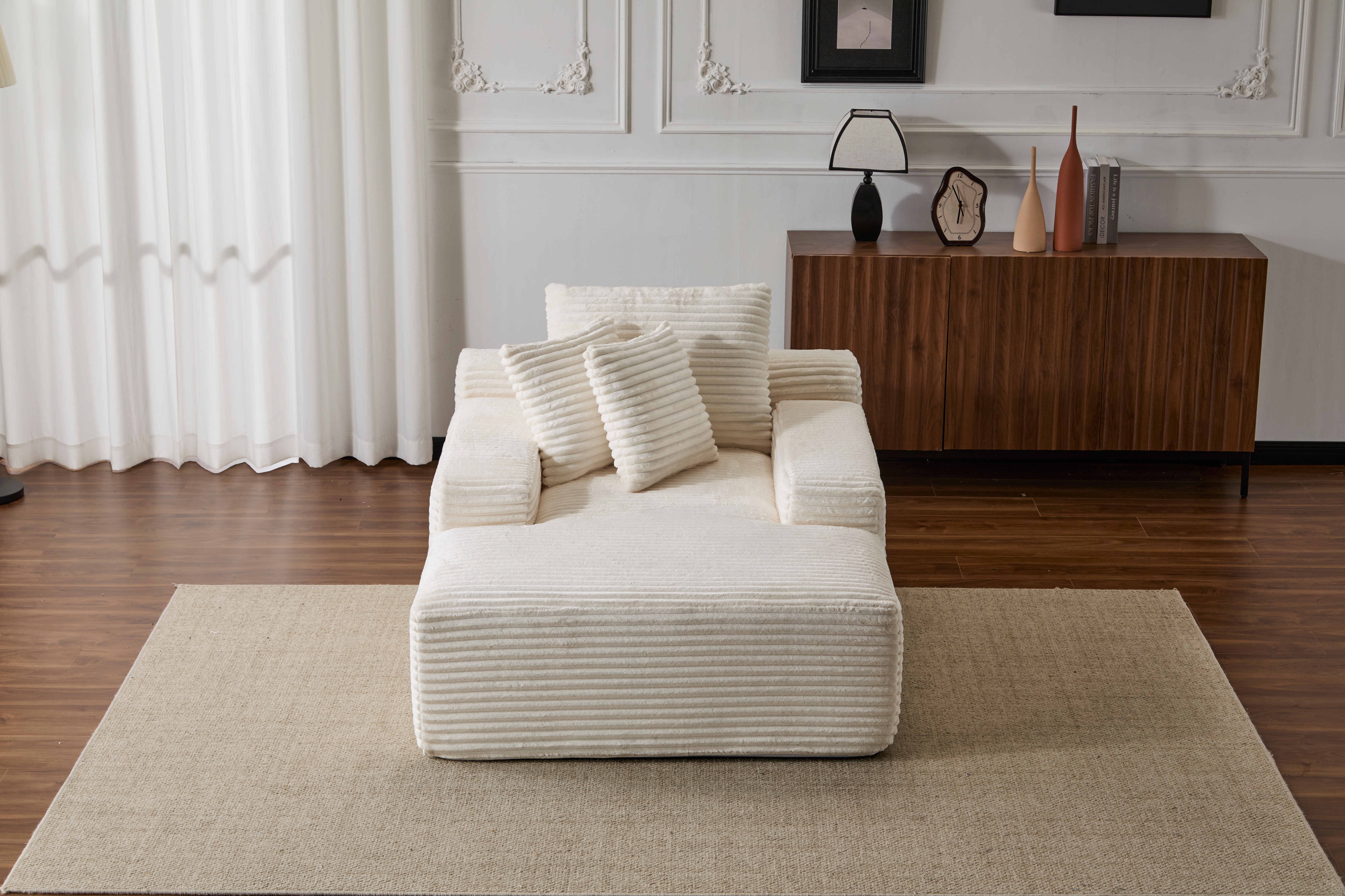 Product Name:Oversized Chaise Lounge Chair Cozy Cloud Couch, Modern Plush Corduroy Upholstered Sleeper Sofa Daybed with 3 Throw Pillows and Wide Armrest for Living Room, No Assembly Required,White