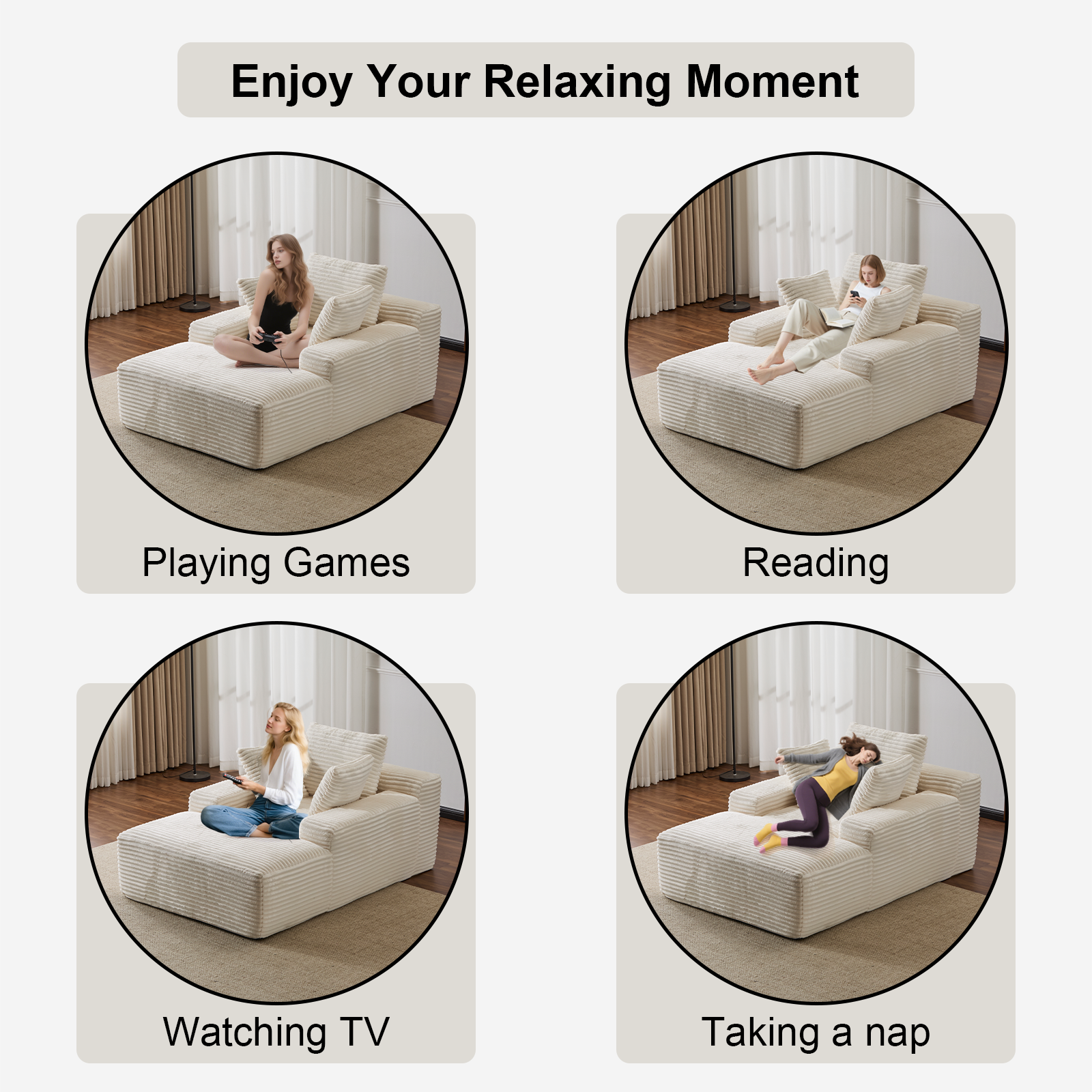 Oversized Chaise Lounge Chair Cozy Cloud Couch, Modern Plush Corduroy Upholstered Sleeper Sofa Daybed With 3 Throw Pillows And Wide Armrest For Living Room, No Assembly Required,White