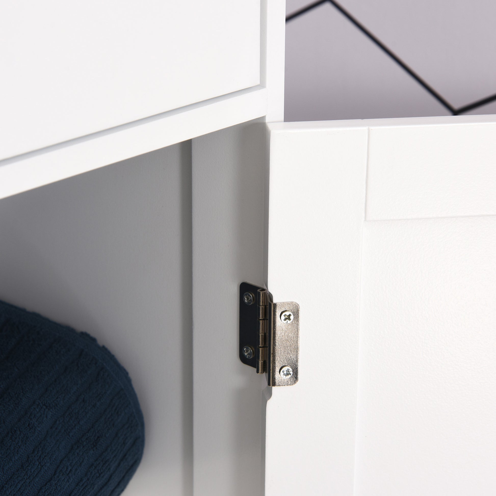 Are you still worried about not finding a suitable place to store things? This simple storage cabinet with doors can display décor and hide away unmentionables. Made into a slim tower design, it will fit into a wealth of spaces, making it great for creating space in any room. Quality material and an anti-toppling design ensure its stability and safety. When you go with a kleankin storage cabinet you can maximize storage and minimize clutter. Features: - Compact tall cabinet for narrow spaces - 3 open shelves on the top, 1 drawer in the middle and 1 cabinet with a shelf inside at the bottom - Transparent acrylic board is suitable for item display - Zinc alloy handles - Elegant design and neutral color to fit any space - Constructed of P2 grade MDF for daily use - Anti-toppling design ensures your safety - Assembly Required Specification: - Color: White - Material: MDF, Acrylic - Overall Dimension: 15.75" W x 10.75" D x 67.5" H - Upper door size: 13.75" W x 33" H - Upper shelf inner size: 13.75" W x 9.25" D x 10.5"/11"/10.8" H - Drawer inner size: 12.75" W x 8.5" D x 4" H - Bottom door size: 13.75" W x 23.25" H - Bottom shelf inner size: 13.75" W x 9.25" D x 11"/11" H - Weight Capacity: 11lbs(each shelf), 4.4lbs(each drawer), 59.4lbs(total) - Item label: 834-291 Package Includes: 1 x Storage Cabinet 1 x Manul Elevate your space with the HOMCOM freestanding tall bathroom storage cabinet, combining style and functionality. With three double-door compartments and an adjustable inner shelf, it keeps your essentials organized. The louvered doors add sophistication, making it versatile for the bathroom, living room, or study. Available in 3 door styles—glass, slab, and shutter—it complements any decor effortlessly. Features: - Three double-door cabinets provide ample storage options for various items - The adjustable shelf inside the middle cabinet accommodates items of different sizes - Louvered doors ensure ventilation, keeping contents fresh - Modern design with three door styles: glass, slab, and shutter - Suitable for kitchen, study, living room, and other versatile applications - Painted MDF frame offers durability and a sleek look - The anti-tipping design enhances safety and protects against accidents - Non-slip foot pads prevent movement and protect floors from scratches - Assembly is required Specification: - Color: White - Materials: MDF, Glass - Overall Dimensions: 23.6" W x 11.8" D x 67.1" H - Top Cabinet Inner: 21.7" W x 10.4" D x 11.6" H(each tier) - Middle Cabinet Inner: 21.7" W x 10.4" D x 6.7" /6.1" H - Bottom Cabinet Inner: 21.7" W x 10.4" D x 9.8" /11.6" H - Weight Capacity: 110 lbs. (total), 11 lbs. (each shelf) - Item Label: 834-678V80WT Package Includes: - 1 x Tall Bathroom Cabinet - 1 x Manual.