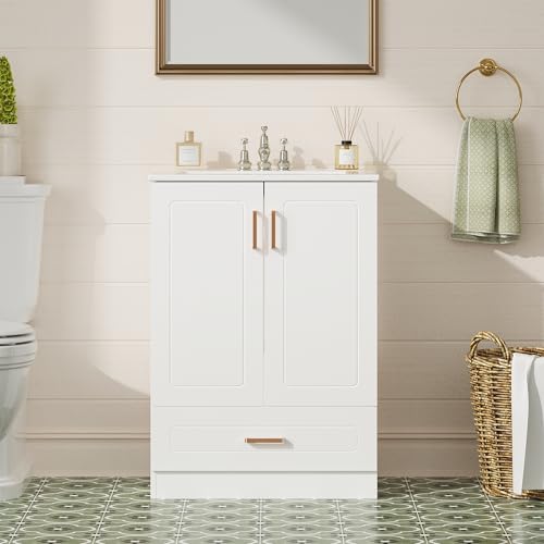 - 【Modern Farmhouse Style Vanity】Crafted in a crisp white finish, this vanity with sink blends effortlessly with farmhouse, modern, or traditional décor, adding brightness and timeless elegance to your vanity bathroom.