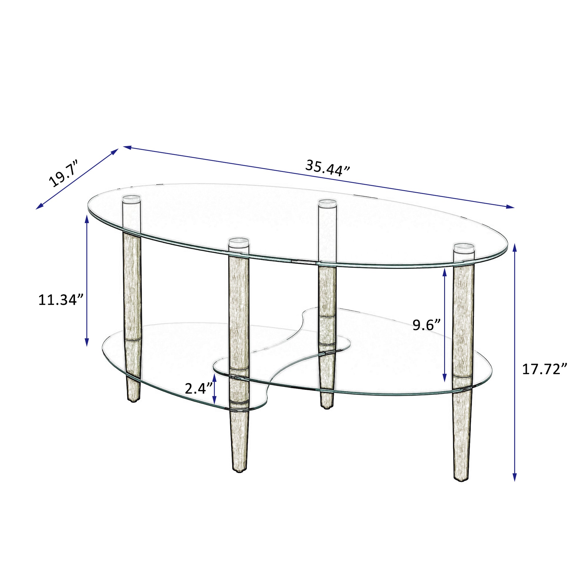 Transparent Oval Glass Coffee Table, Modern Living Room Table, Oak Leg Coffee Table, Three-layer Glass Table