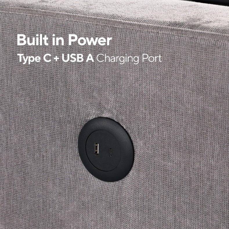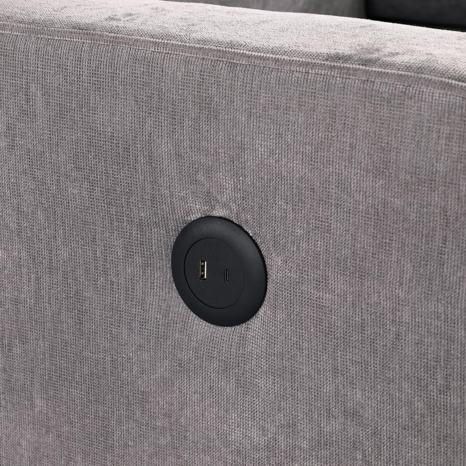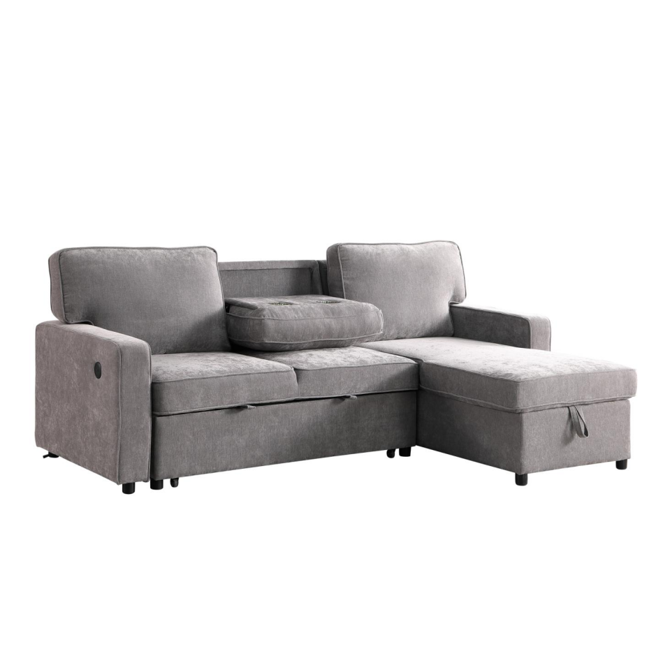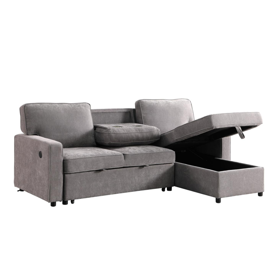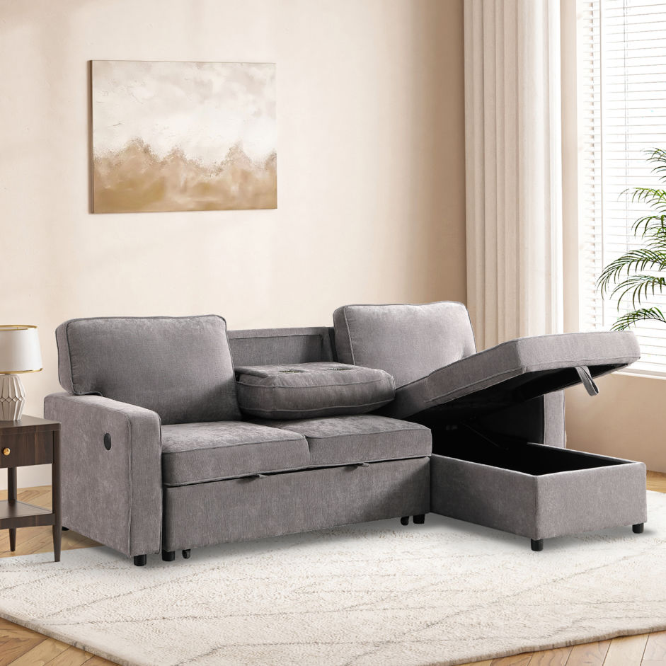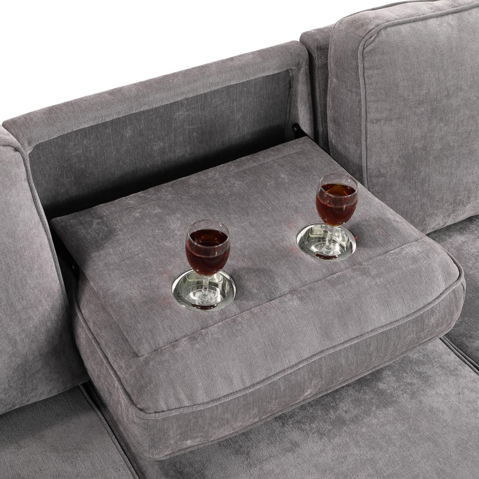 Upholstery Sleeper GREY Sectional Sofa With Storage Space, USB Port, 2 Cup Holders On Back Cushions