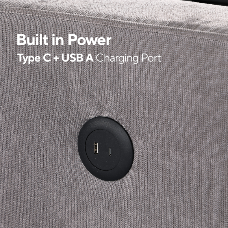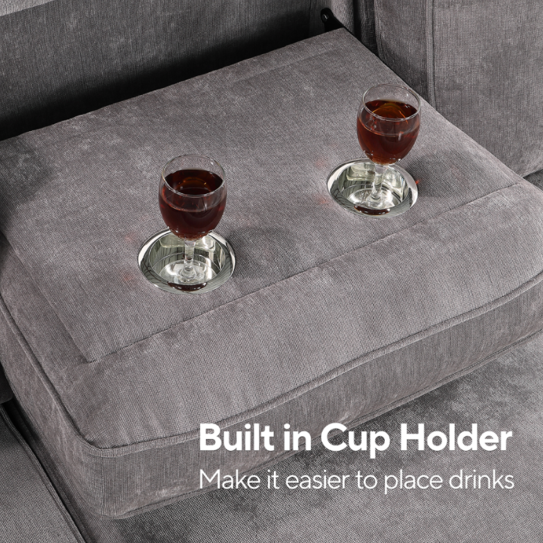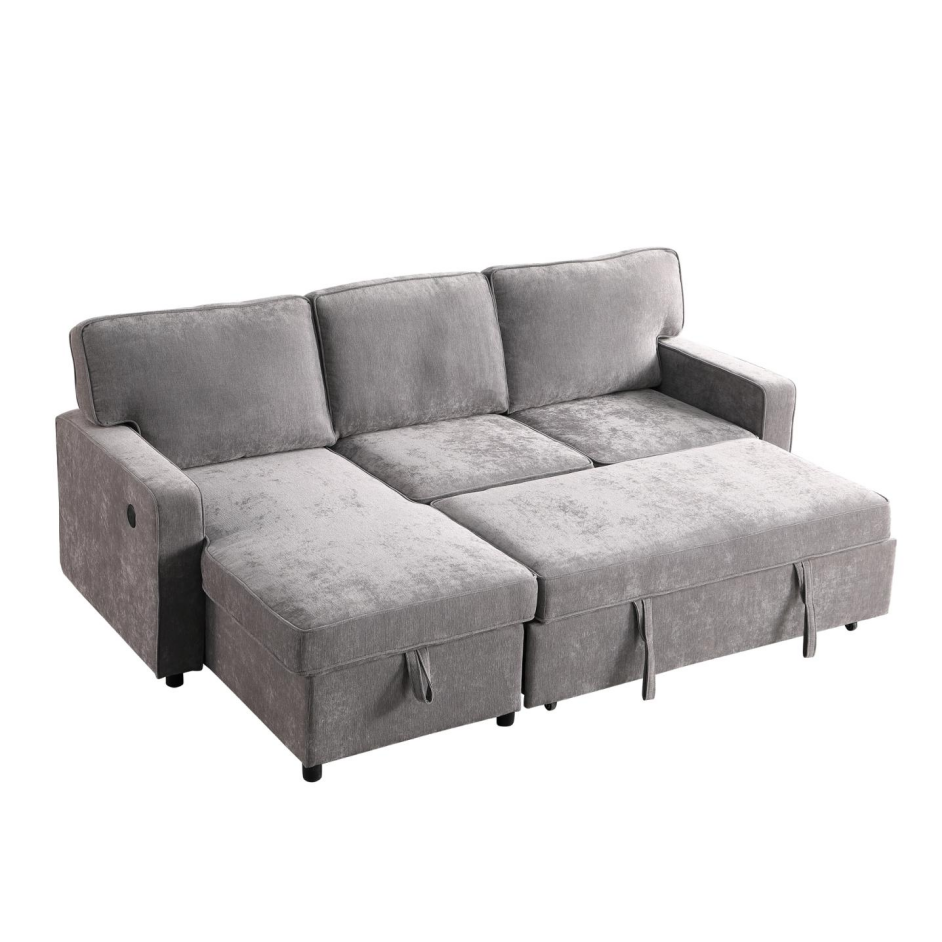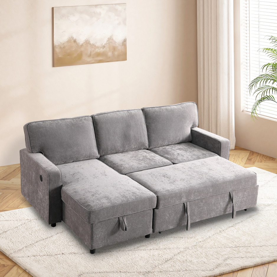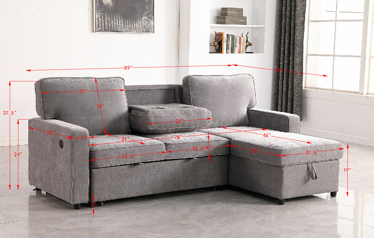 Product Name:Upholstery Sleeper GREY Sectional Sofa with Storage Space, USB port, 2 cup holders on Back Cushions