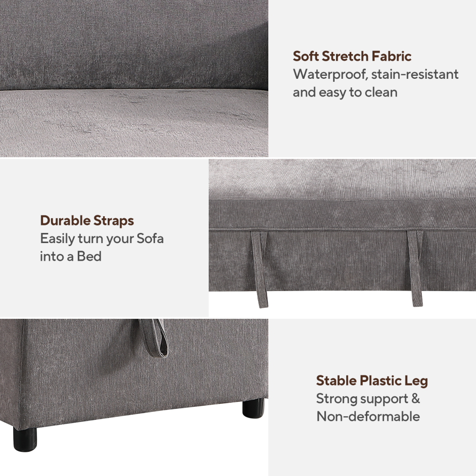 - Our sofa bed features an L-shaped configuration that adds a touch of contemporary elegance to your living space. The versatile design allows for seamless integration into any room layout, while maximizing seating and lounging space.