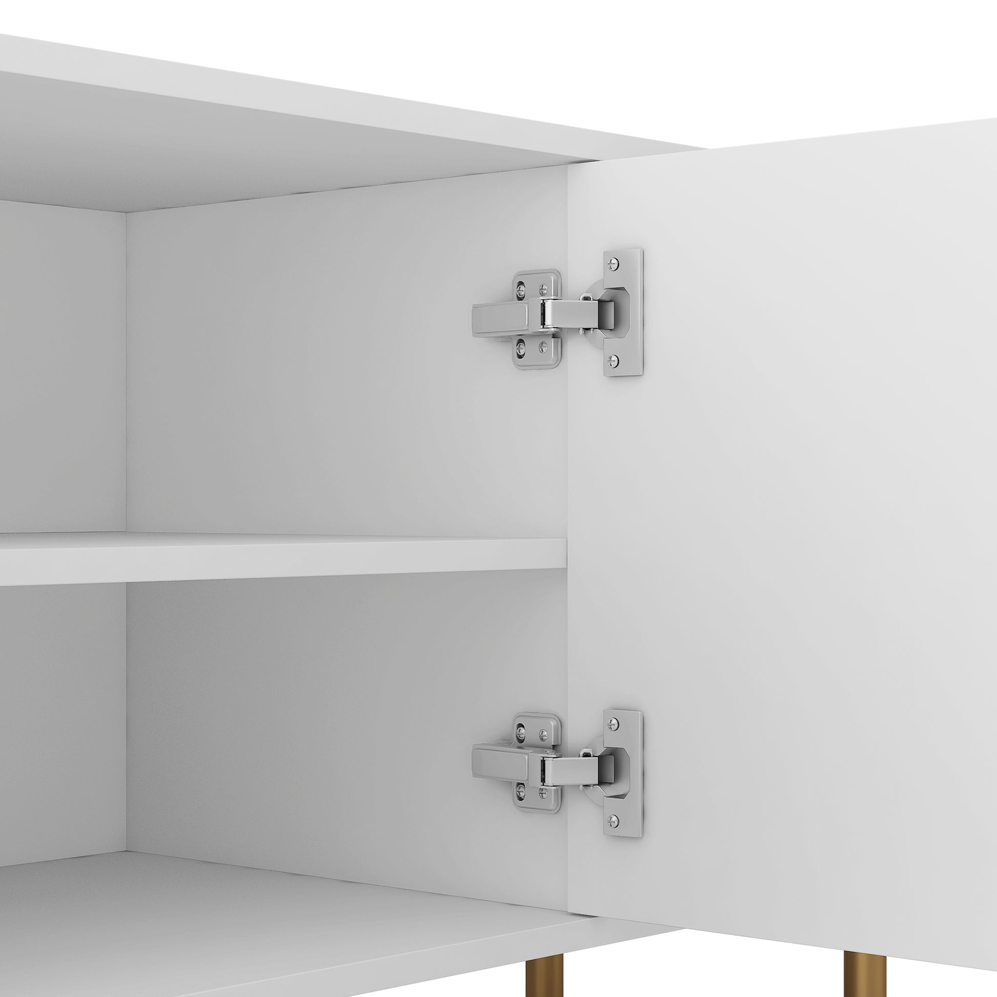 - VARIOUS STORAGE SPACES: The TV stand has 4 spacious cabinets for living room storage. The metal handles complement the gold legs.