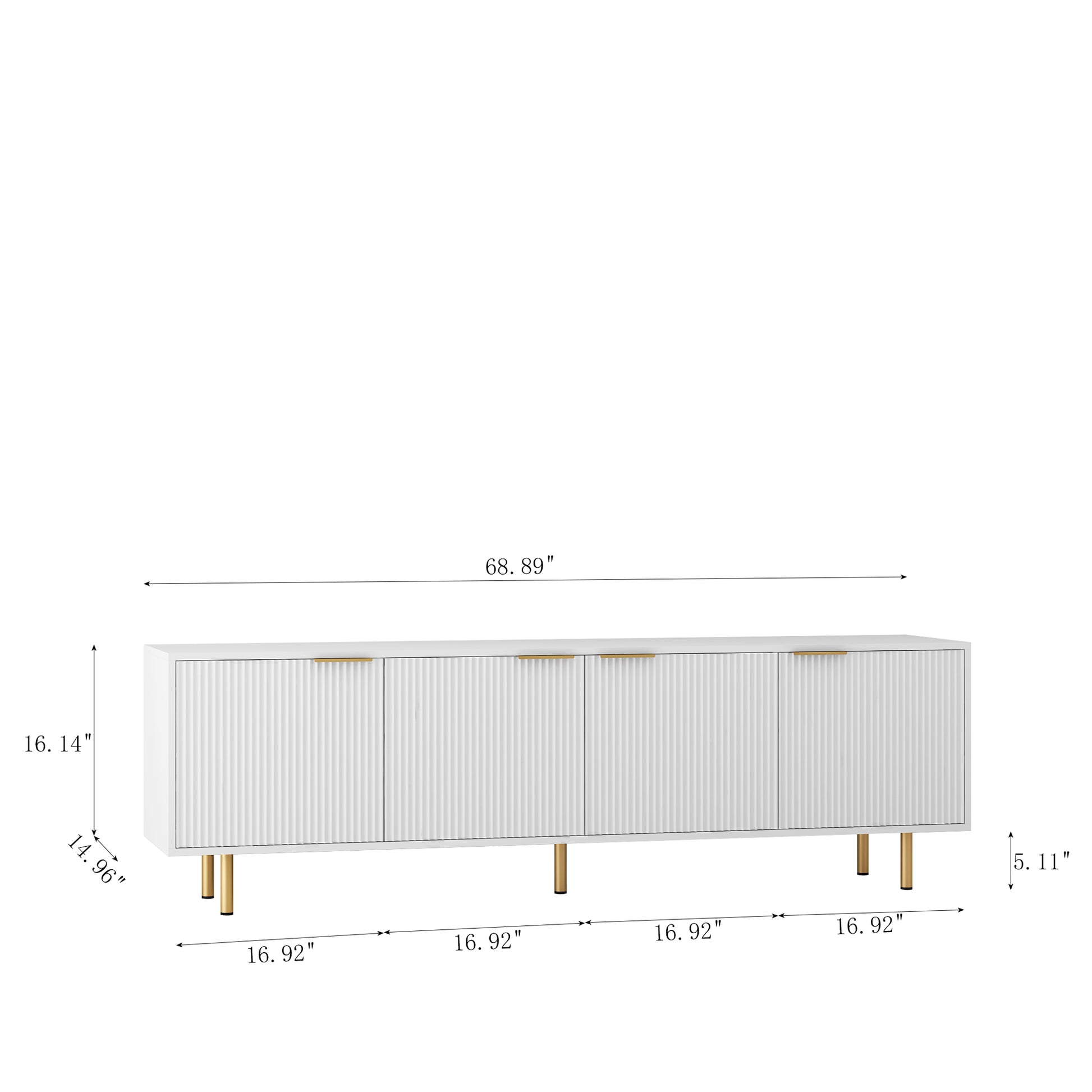 Product Name:White Modern TV Stand Fluted 68" t, Entertainment Center with Storage Doors, TV Console Media Cabinet, for 55+ Inch TV, Living Room